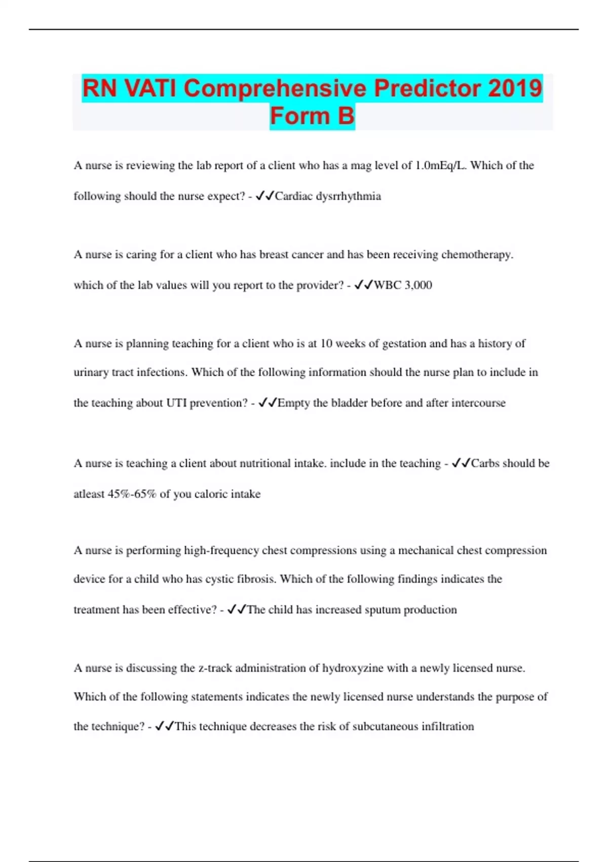 RN VATI Comprehensive Predictor 2019 Form B | 160 Questions with 100% Correct Answers | Verified | 26 Pages