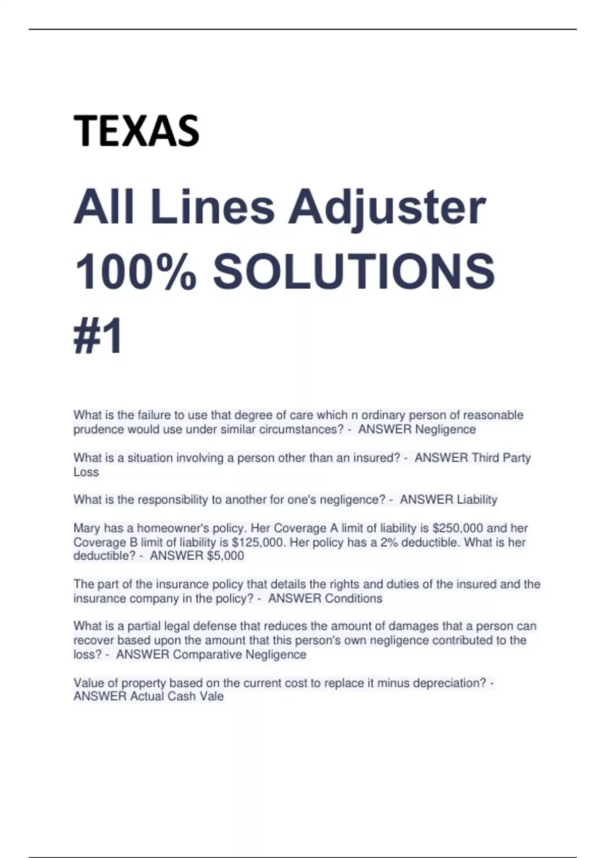 TEXAS All Lines Adjuster 100% SOLUTIONS #1