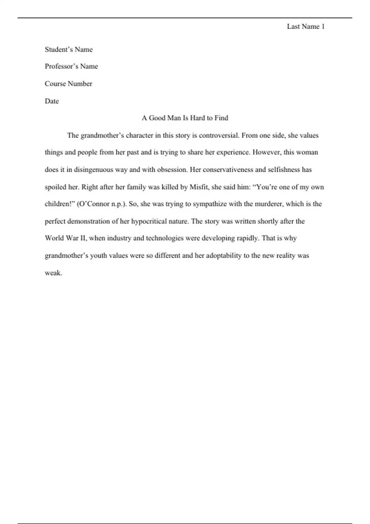 "A Good Man is Hard to Find" by F. O'Connor short summary