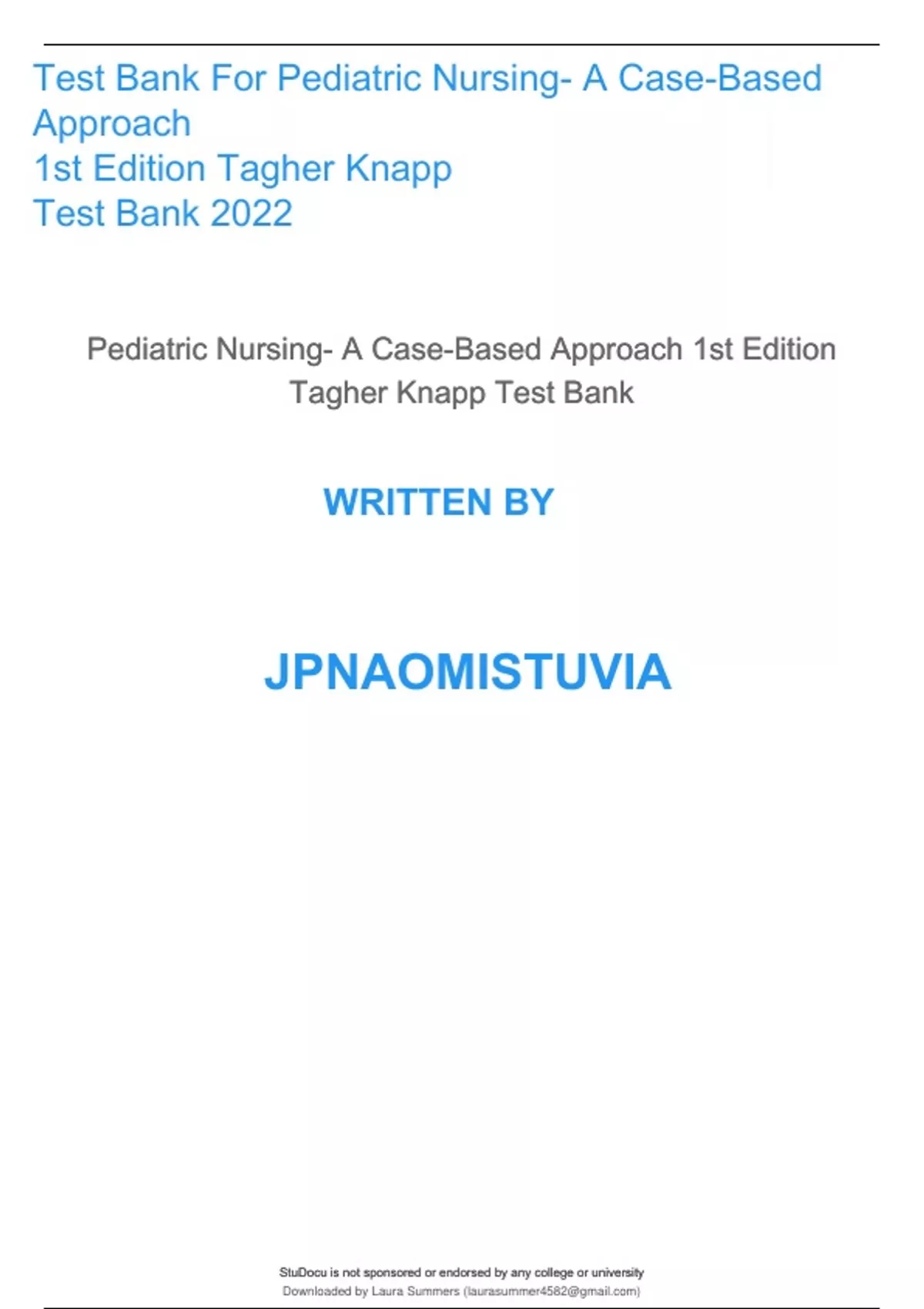 Test Bank For Pediatric Nursing- A Case-Based