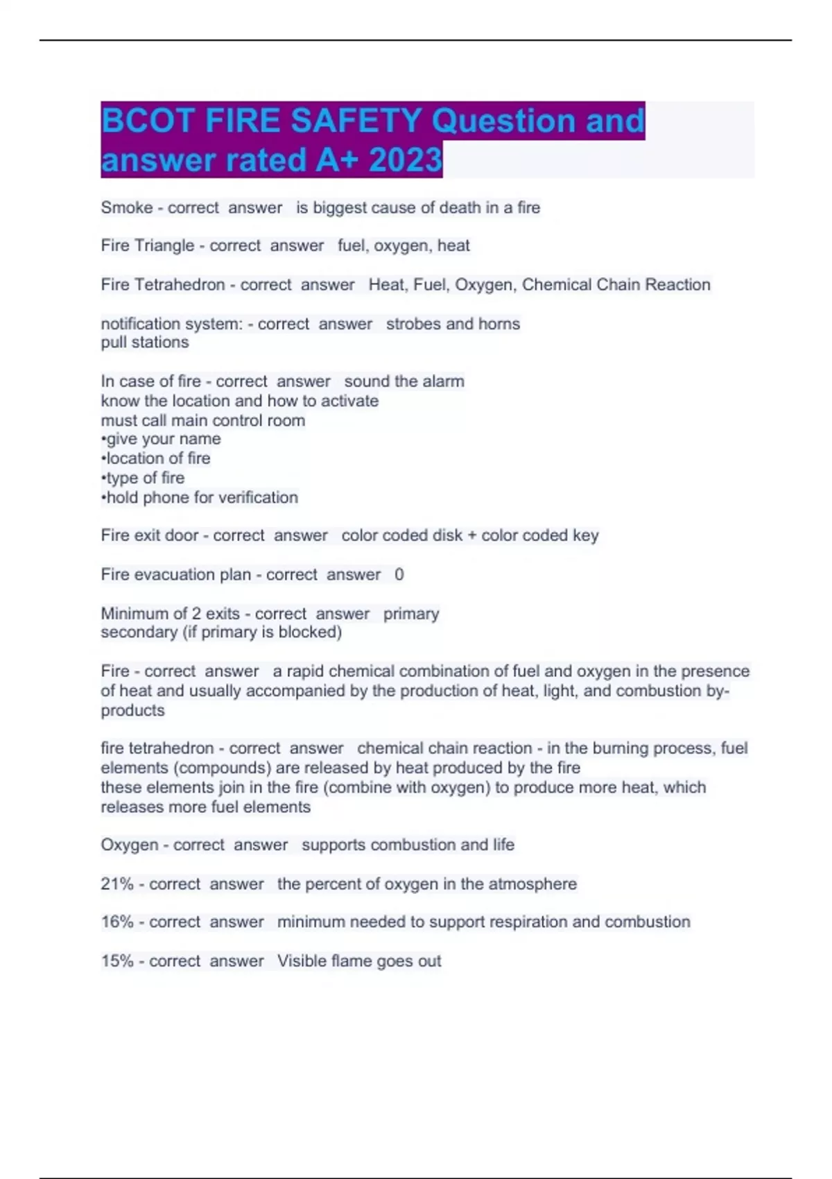 - BCOT FIRE SAFETY Question and answer rated A+ 2023
