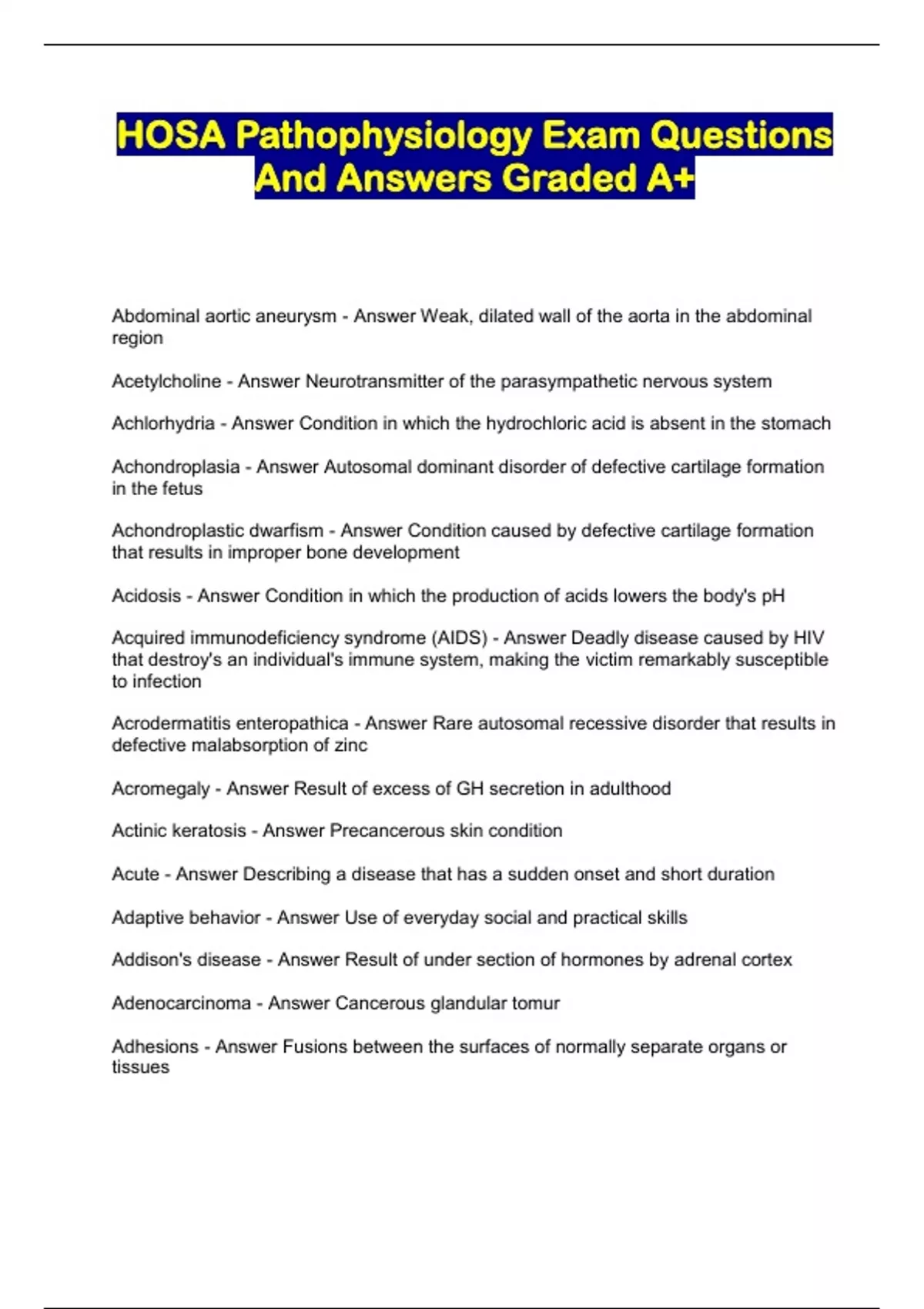 HOSA Pathophysiology Exam Questions And Answers Graded A+...