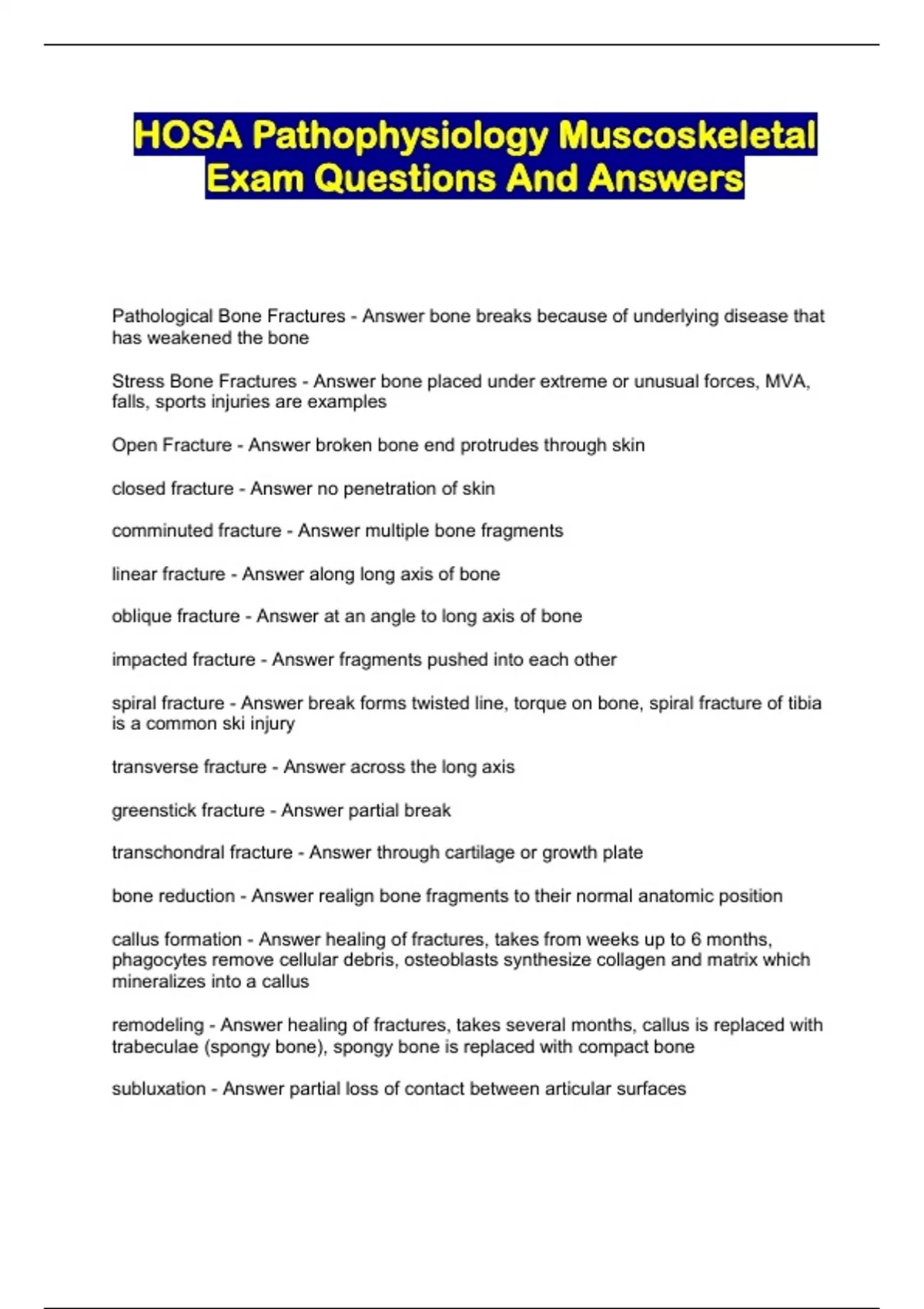 HOSA Pathophysiology Muscoskeletal Exam Questions And Answers...