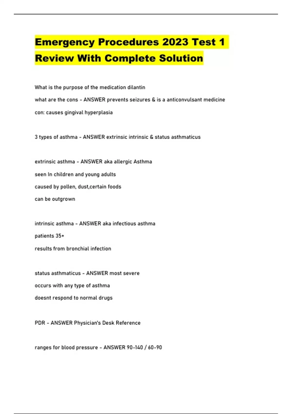 Emergency Procedures 2023 Test 1 Review With Complete Solution...