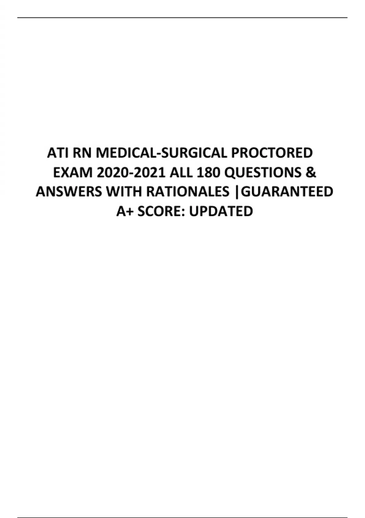 ATI RN MEDICAL-SURGICAL PROCTORED EXAM ALL 180 QUESTIONS & ANSWERS WITH RATIONALES |GUARANTEED A+ SCORE: UPDATE