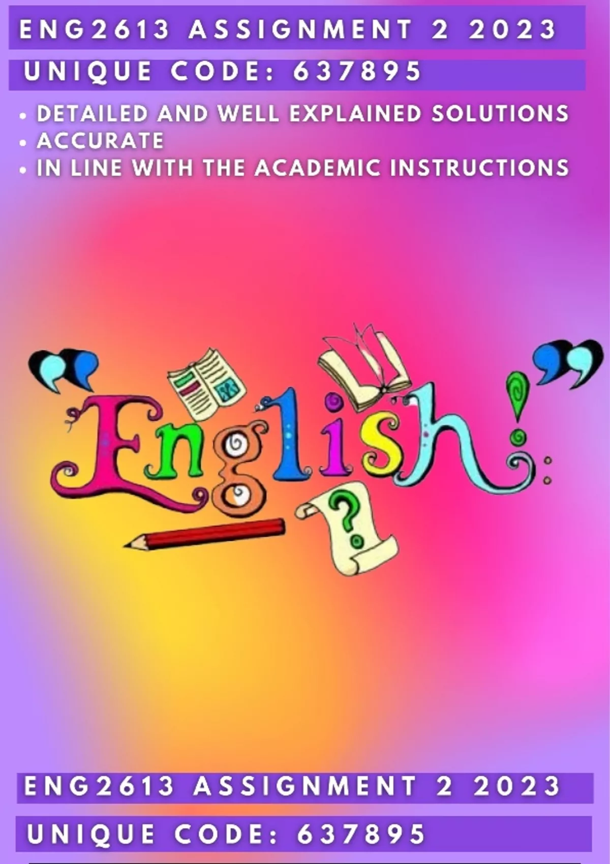 ENG2613 Assignment 2 () 9 June 2023 | Accurate, Comprehensive, and Instruction-Compliant Solutions. Additional explanations are provided for better understanding of the questions and solutions.