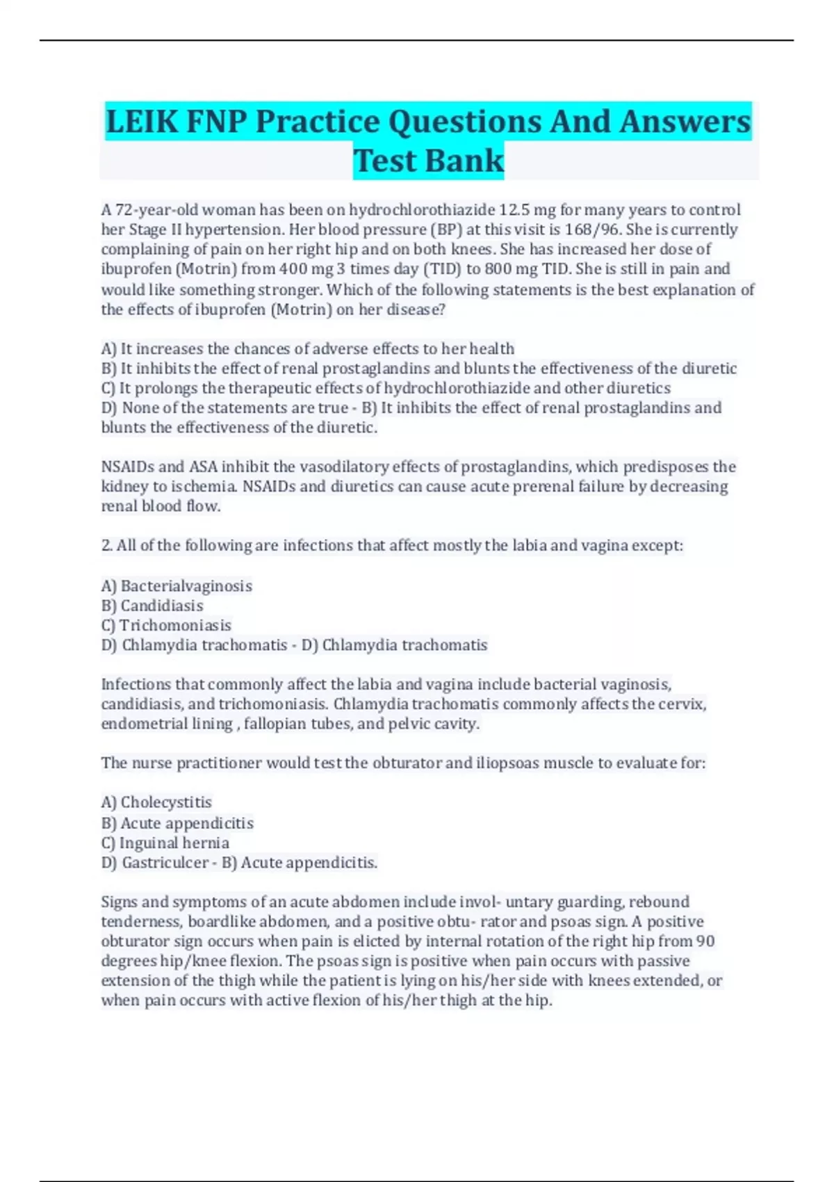 LEIK FNP Practice Questions And Answers Test Bank