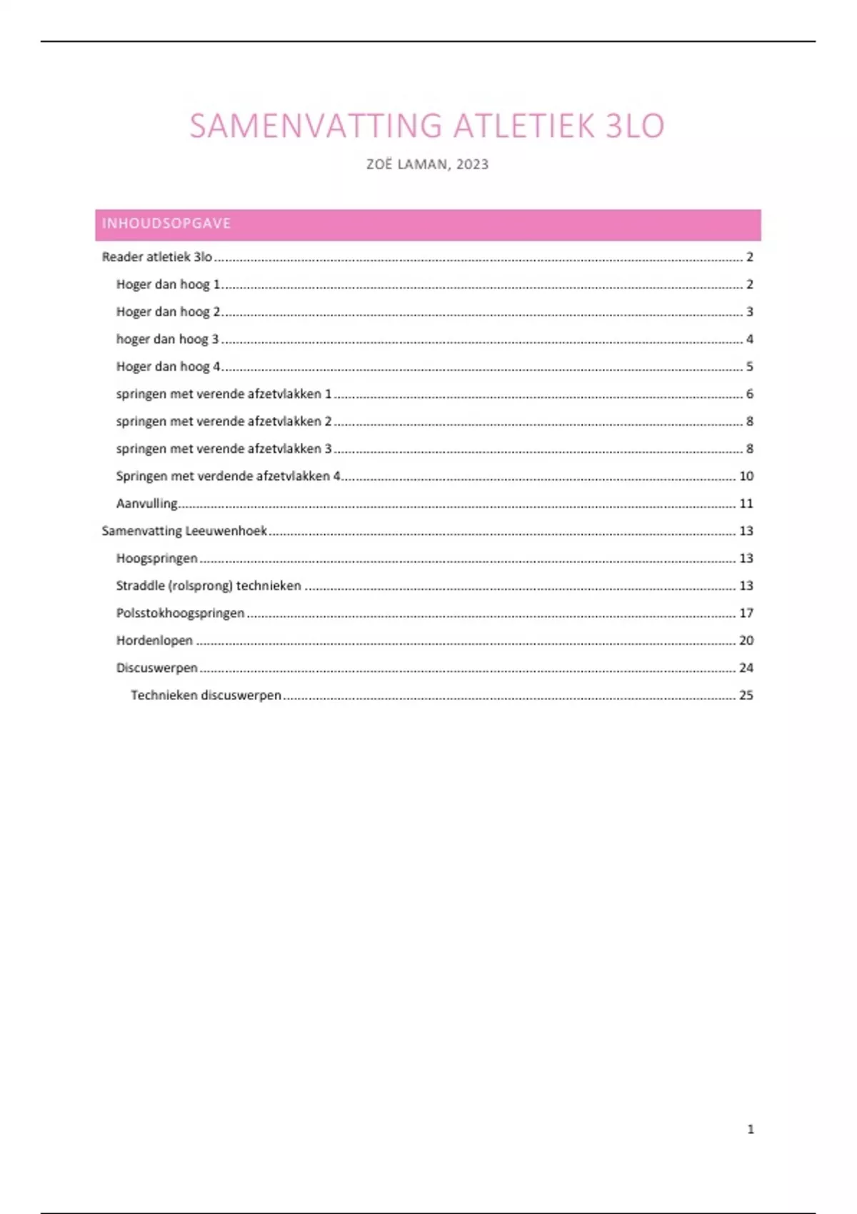 alle benodigde literatuur voor het atletiek tentamen van 3lo samengevat tot één overzichtelijk document.