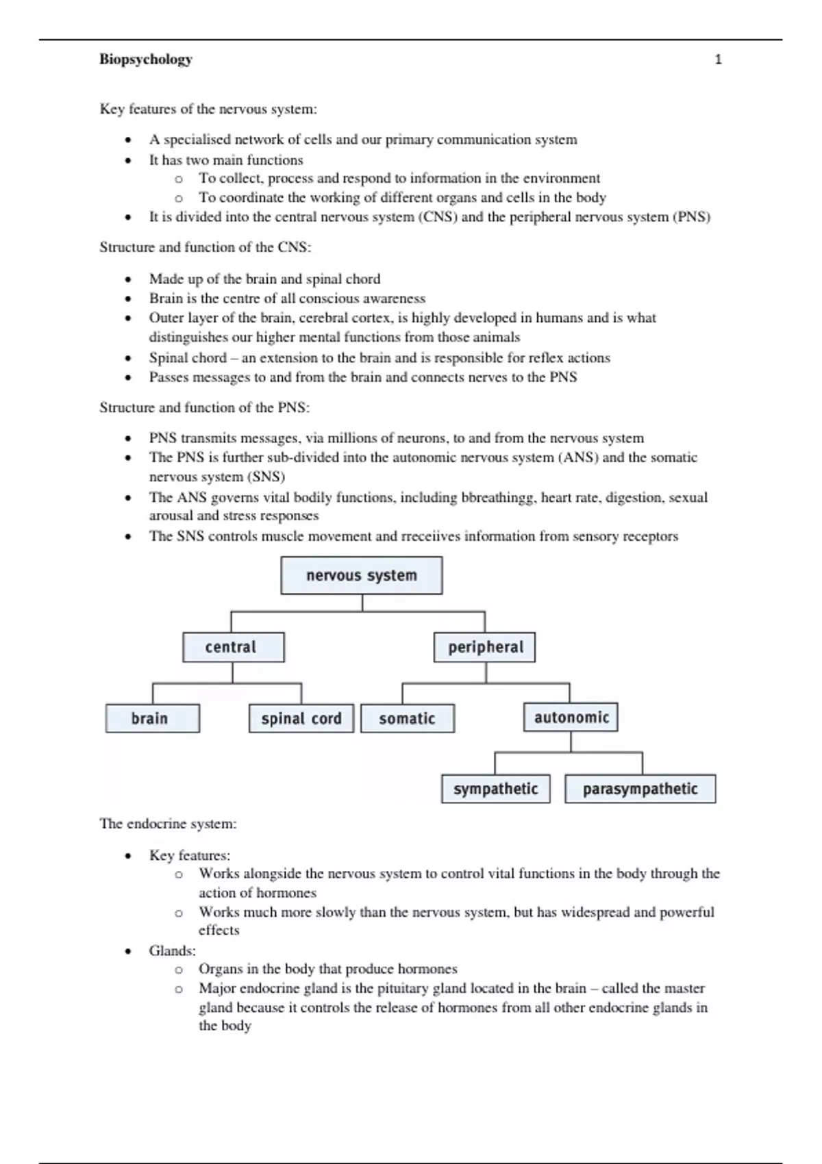 Summary Psychology A-level AQA - Biopsychology