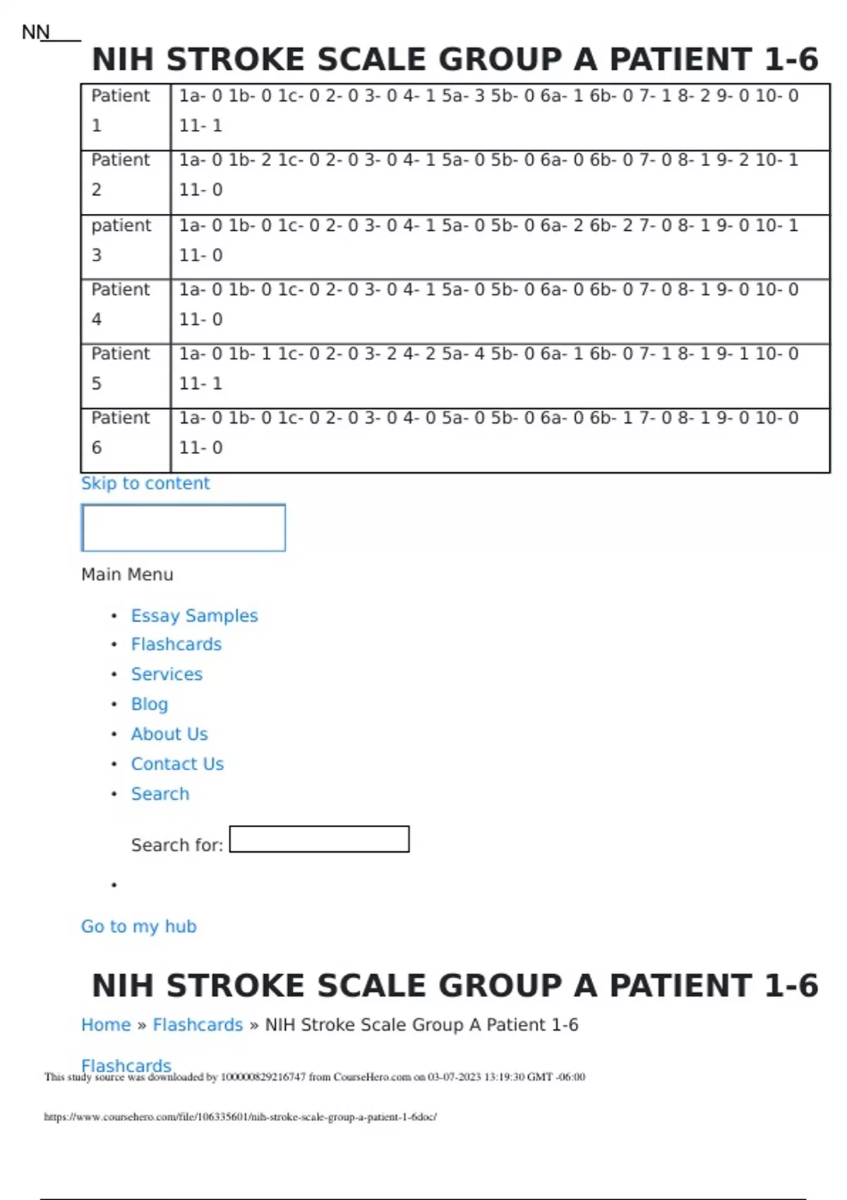 APEX NIH Stroke Scale Group A Patient 1-6 AdventHealth 2023