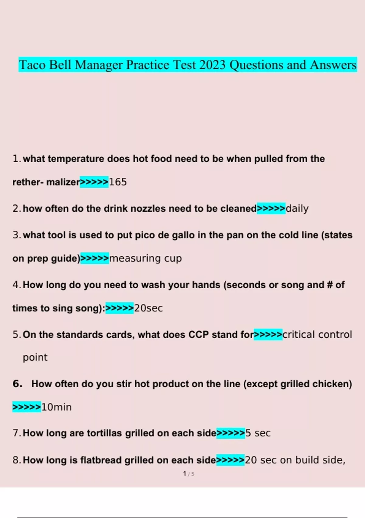 Taco bell test. questions verified with 100% correct answers