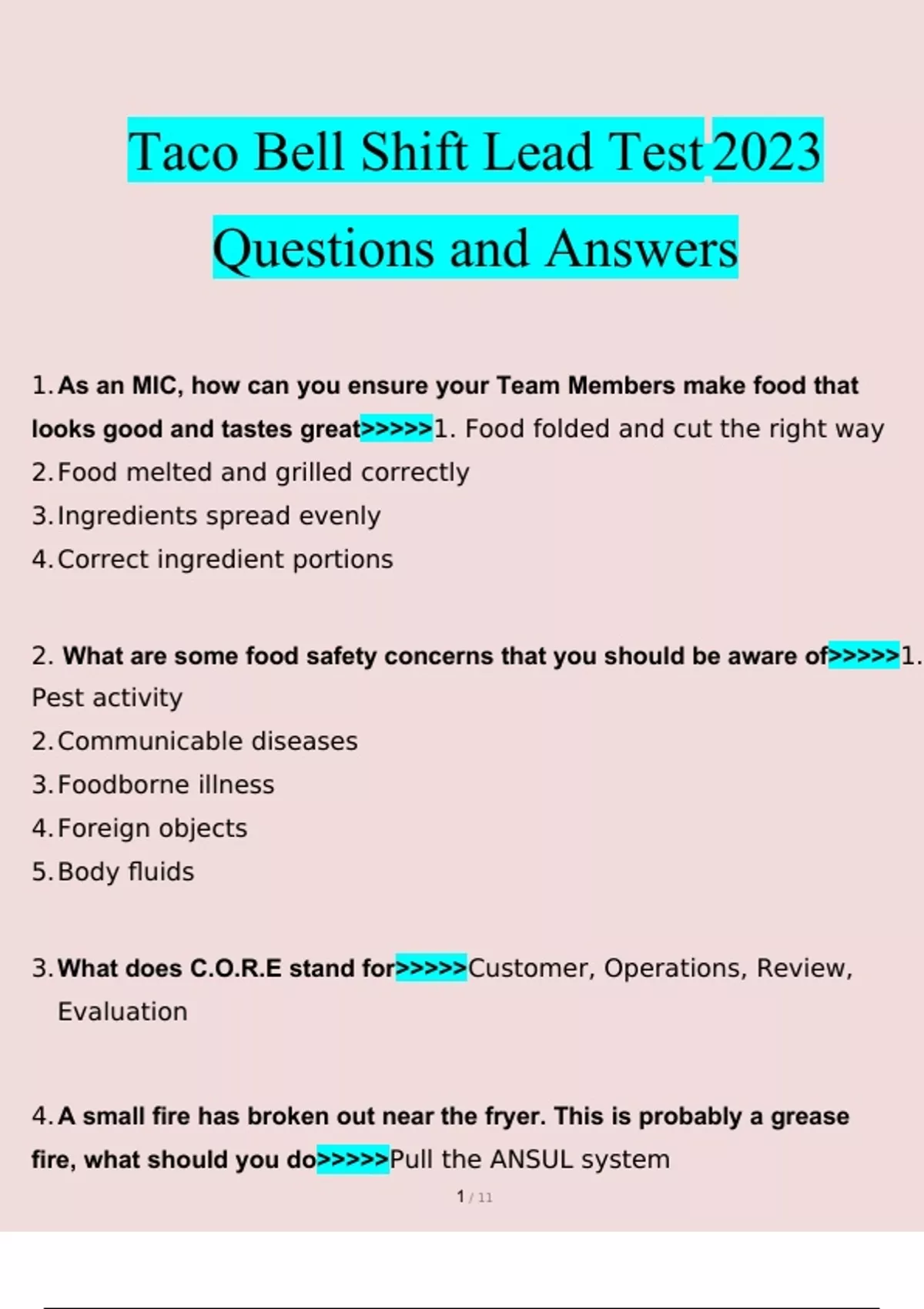 taco bell shift lead test questions verified with 100 correct answers