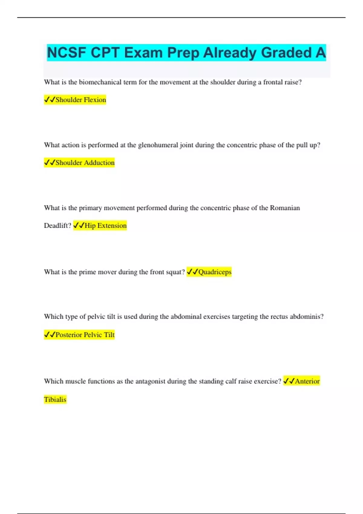 NCSF CPT Exam Prep Already Graded A