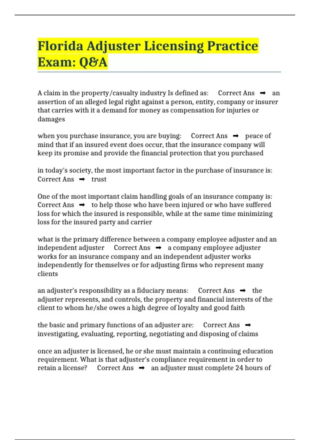 Florida Adjuster Licensing Practice Exam: Q&A