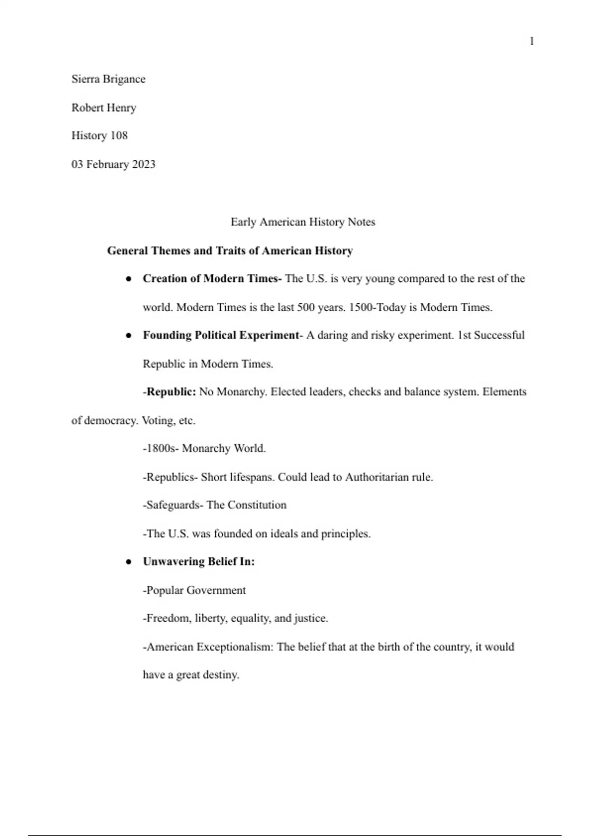 This set of notes is from an Early American History class. These notes start at the Aztec civilization in the early 1400s and end at the end of the presidency of Andrew Jackson.