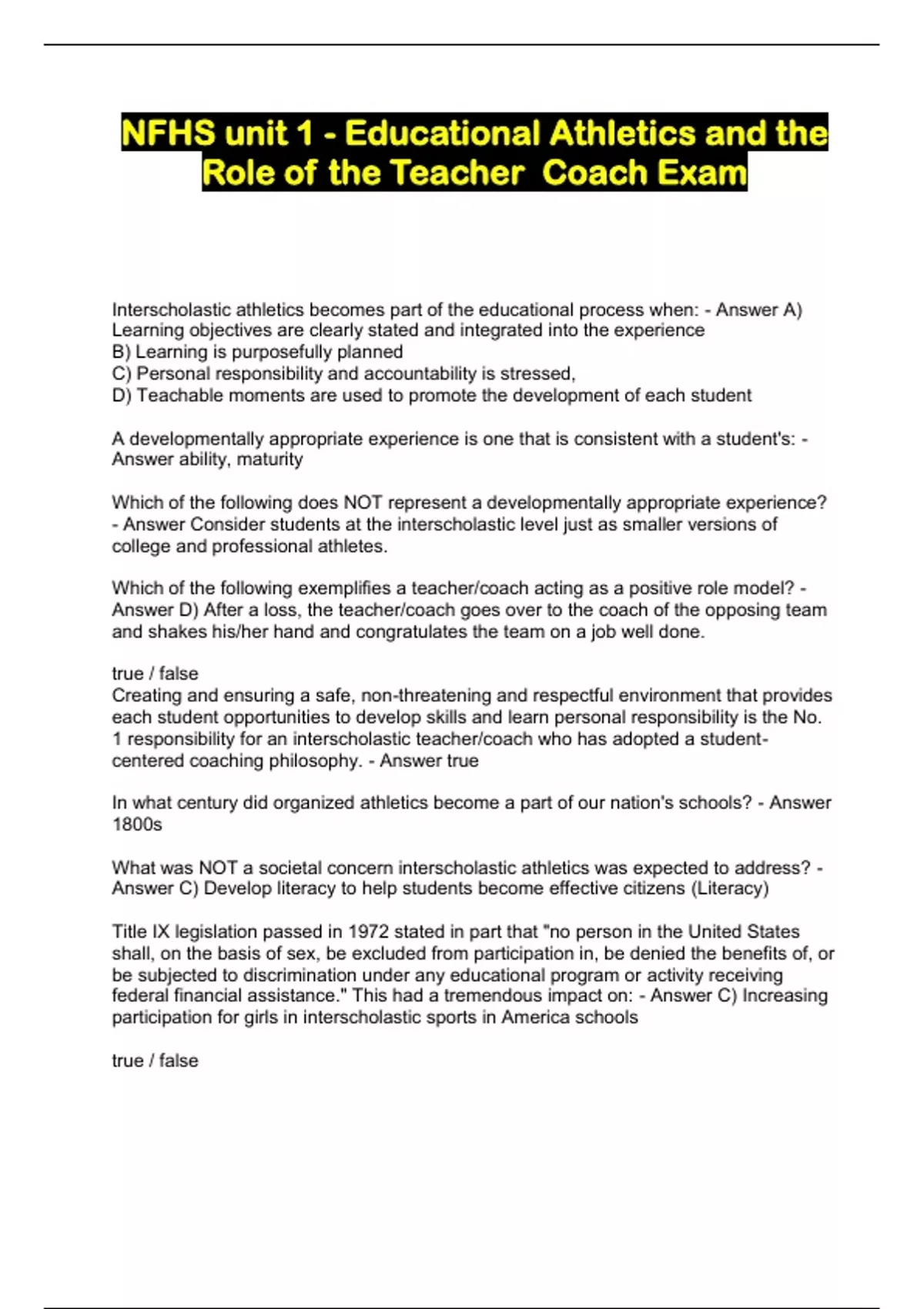 NFHS unit 1 - Educational Athletics and the Role of the Teacher Coach Exam...
