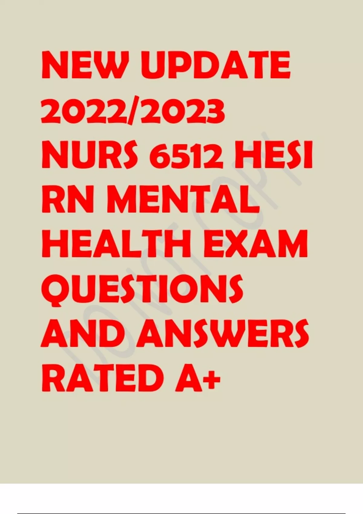 NEW UPDATE 2022/2023 NURS 6512 HESI RN MENTAL HEALTH HESI REVIEW EXAM QUESTIONS AND ANSWERS BEST RATED A+ ASSURED SUCCESS