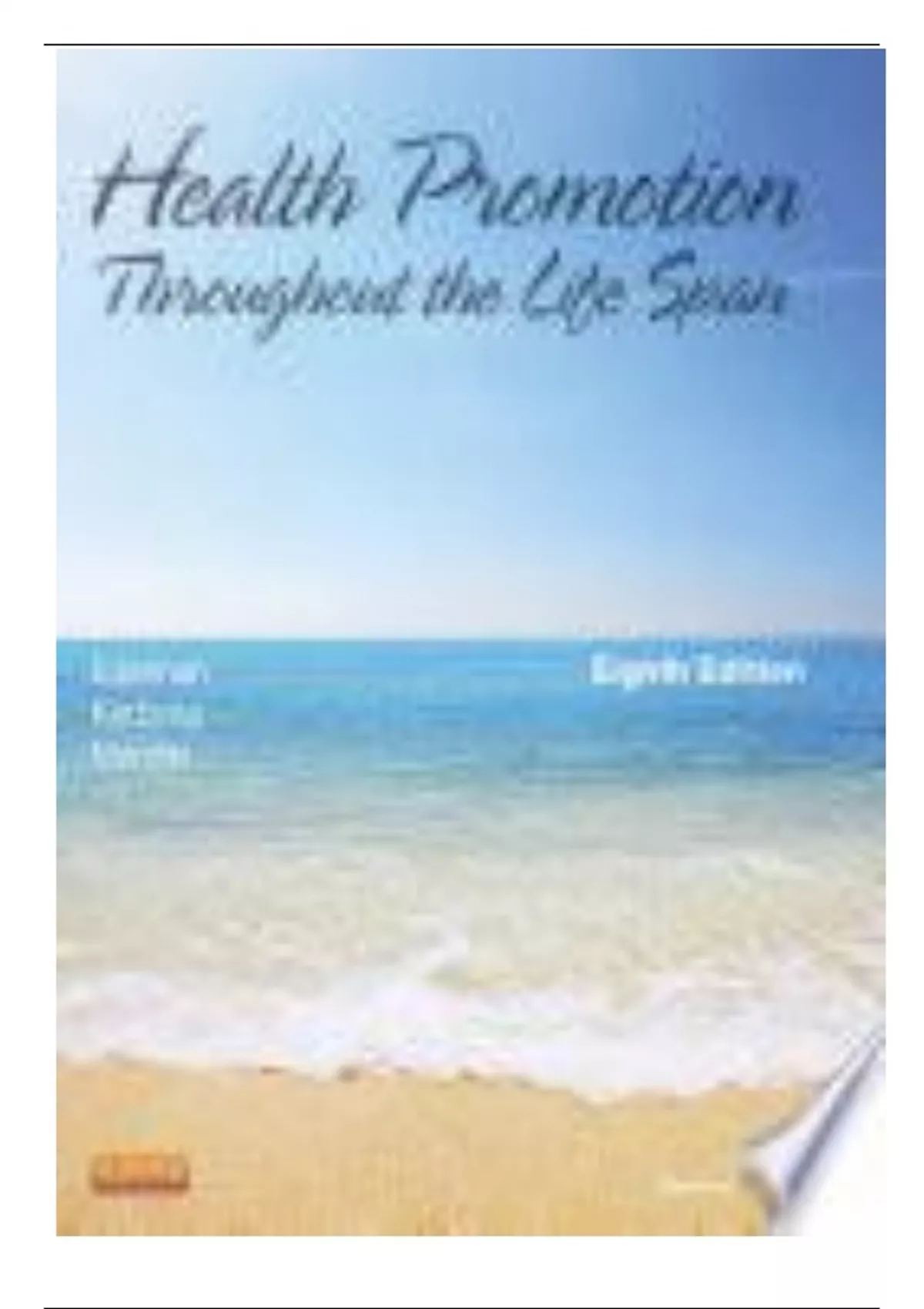 HEALTH PROMOTION THROUGHOUT THE LIFE SPAN, 8TH EDITION BY CAROLE EDELMAN TEST BANK-1. Which model of health is most likely used by a person who does not believe in preventive health care? a. Clinical model b. Role performance model c. Adaptive model d. Eudaimonistic model ANS: A The clinical model of health views the absence of signs and symptoms of disease as indicative of health. People who use this model wait until they are very sick to seek care. DIF: Cognitive Level: Remember (Knowledge) REF: p. 3 2. A person with chronic back pain is cared for by her primary care provider as well as receives acupuncture. Which model of health does this person likely favor? a. Clinical model b. Role performance model c. Adaptive model d. Eudaimonistic model ANS: D The eudaimonistic model embodies the interaction and interrelationships among physical, social, psychological, and spiritual aspects of life and the environment in goal attainment and creating meaning in life. Practitioners who practice the clinical model may not be enough for someone who believes in the eudaimonistic model. Those who believe in the eudaimonistic model often look for alternative providers of care. DIF: Cognitive Level: Apply (Application) REF: p. 3 3. A state of physical, mental, spiritual, and social functioning that realizes a person’s potential and is experienced within a developmental context is known as: a. growth and development. b. health. c. functioning. d. high-level wellness. ANS: B Health is defined as a state of physical, mental, spiritual, and social functioning that realizes a person’s potential and is experienced within a developmental context. DIF: Cognitive Level: Remember (Knowledge) REF: p. 5 4. Which of the following best describes a client who has an illness? a. Someone who has well-controlled diabetes b. Someone with hypercholesterolemia c. Someone with a headache d. Someone with coronary artery disease without angina ANS: C Someone with a headache represents a person with an illness. An illness is made up of the subjective experience of the individual and the physical manifestation of disease. It can be described as a response characterized by a mismatch between a person’s needs and the resources available to meet those needs. A person can have a disease without feeling ill. The other choices represent disease. DIF: Cognitive Level: Analyze (Analysis) REF: p. 6 5. Which US report is considered a landmark document in creating a global approach to health? a. The 1990 Health Objectives for the Nation: A Midcourse Review b. Healthy People 2020 c. Healthy People 2000 d. The U.S. Surgeon General Report ANS: C Healthy People 2000 and its Midcourse Review and 1995 Revisions were landmark documents in which a consortium of people representing national organizations worked with US Public Health Service officials to create a more global approach to health. DIF: Cognitive Level: Remember (Knowledge) REF: p. 6 6. Which of the following represents a method of primary prevention? a. Informational session about healthy lifestyles b. Blood pressure screening c. Interventional cardiac catheterization d. Diagnostic cardiac catheterization ANS: A Primary prevention precedes disease or dysfunction. It includes health promotion and specific protection and encourages increased awareness; thus, education about healthy lifestyles fits this definition. Blood pressure screening does not prevent disease, but instead identifies it. DIF: Cognitive Level: Apply (Application) REF: p. 11 7. Which of the following represents a method of secondary prevention? a. Self–breast examination education b. Yearly mammograms c. Chemotherapy for advanced breast cancer d. Complete mastectomy for breast cancer ANS: B Screening is secondary prevention because the principal goal of screenings is to identify individuals in an early, detectable stage of the disease process. A mammogram is a screening tool for breast cancer and thus is considered a method of secondary prevention. DIF: Cognitive Level: Apply (Application) REF: p. 15 8. Which of the following represents a method of tertiary prevention? a. Drunk driving campaign b. Road blocks for drunk driving c. Emergency surgery for head trauma after a motor vehicle accident d. Physical and occupational therapy after a motor vehicle accident with head trauma ANS: D Physical therapy and occupati
