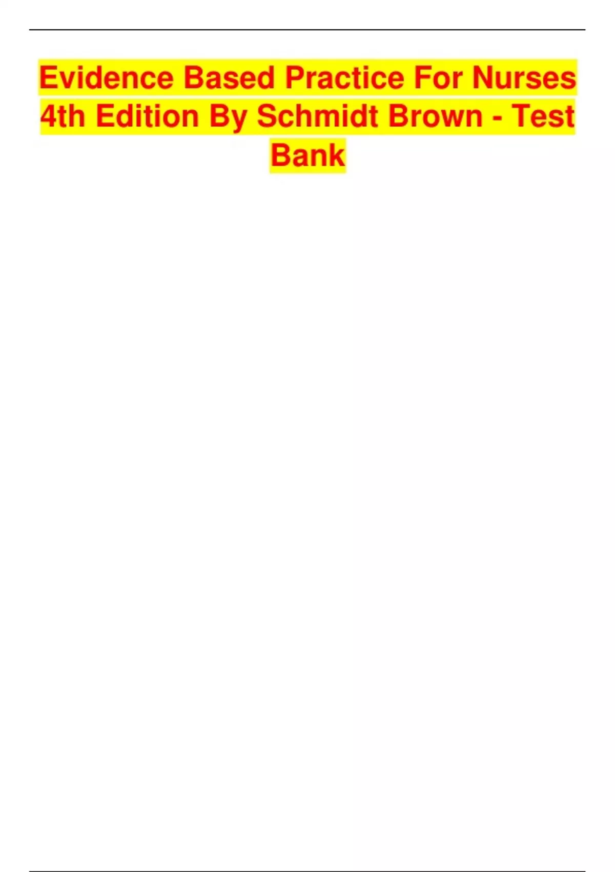 Evidence Based Practice For Nurses 4th Edition By Schmidt Brown - Test Bank WITH COMPLETE SOLUTIONS 2023|2024 UPDATED