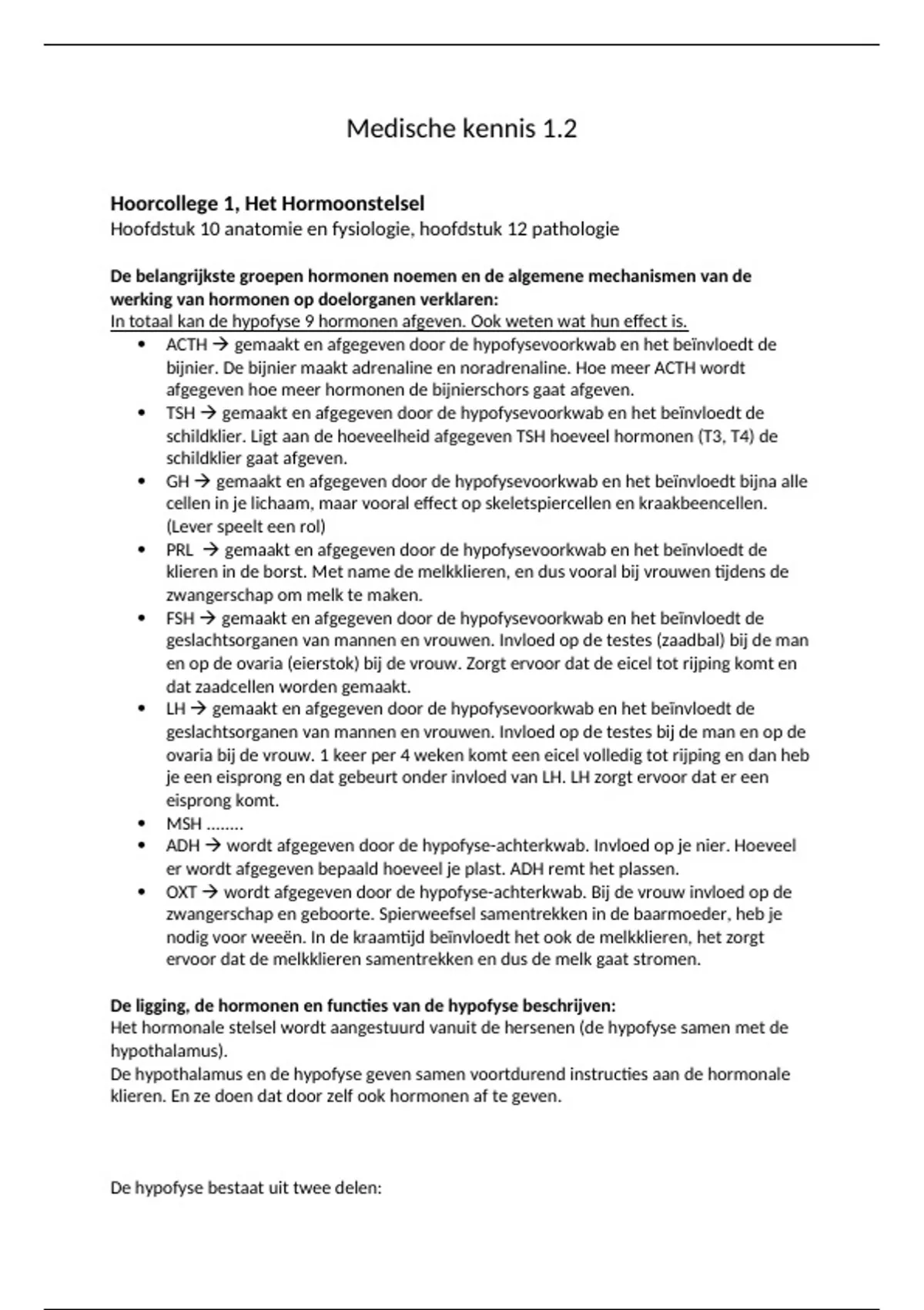 Hoofdstuk 10 anatomie en fysiologie, hoofdstuk 12 pathologie