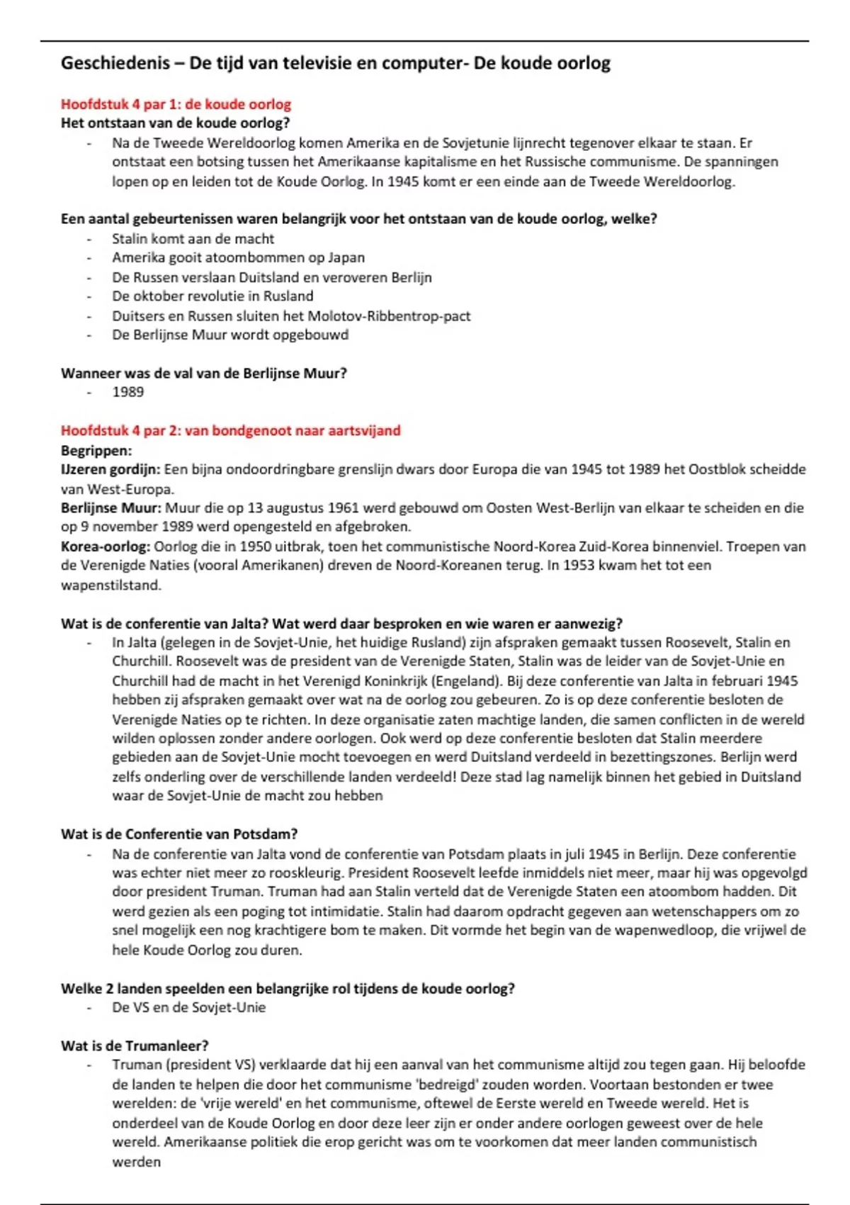 Hoofdstuk 4 par 1: de koude oorlog