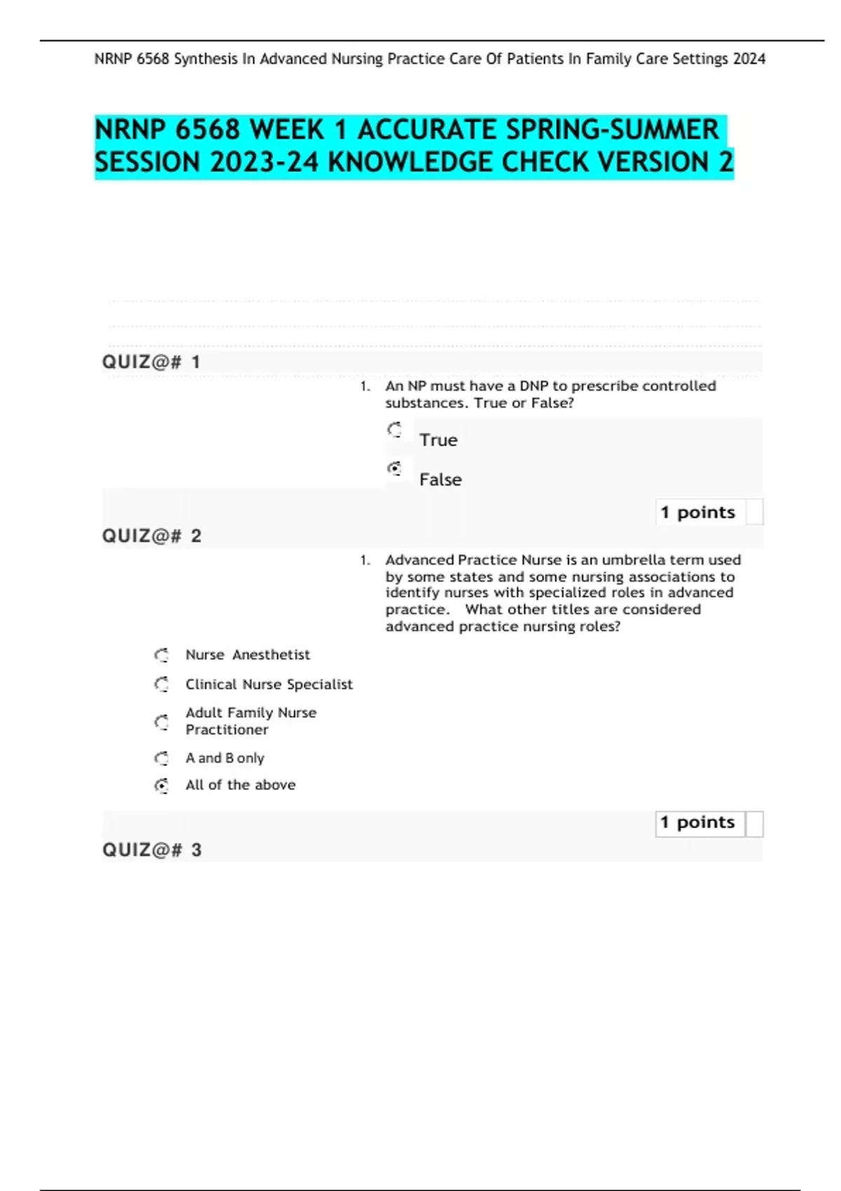 NURS 6568 WEEK 1 KNOWLEDGE CHECK VERSION 3 Professional Issues GRADED A+