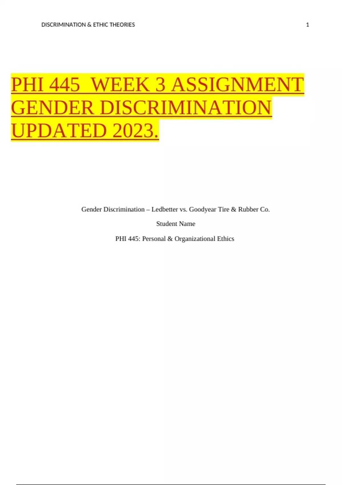 PHI 445 WEEK 3 ASSIGNMENT GENDER DISCRIMINATION UPDATED 2023.