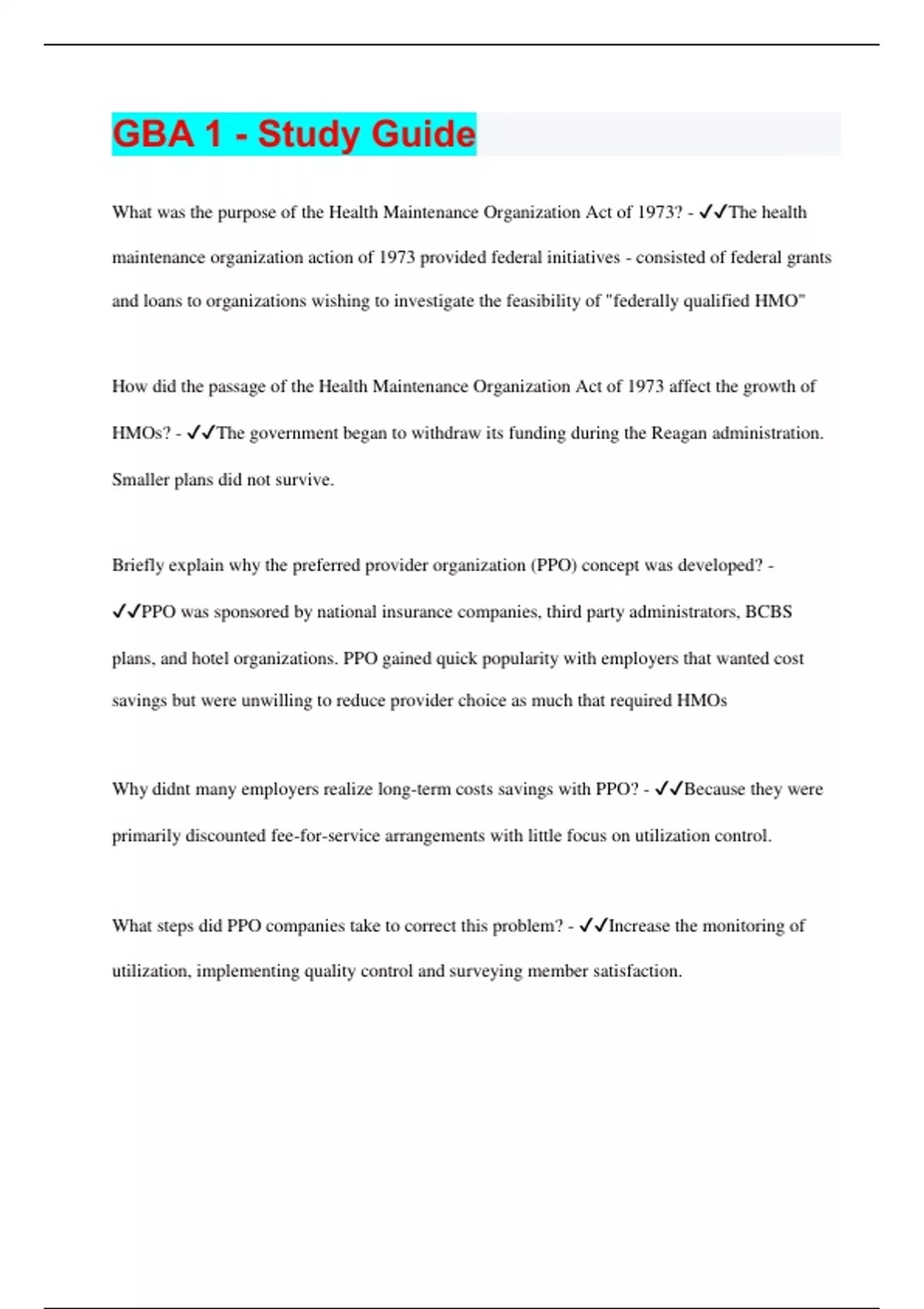 GBA 1 - Study Guide | Questions with 100% Correct Answers | Verified