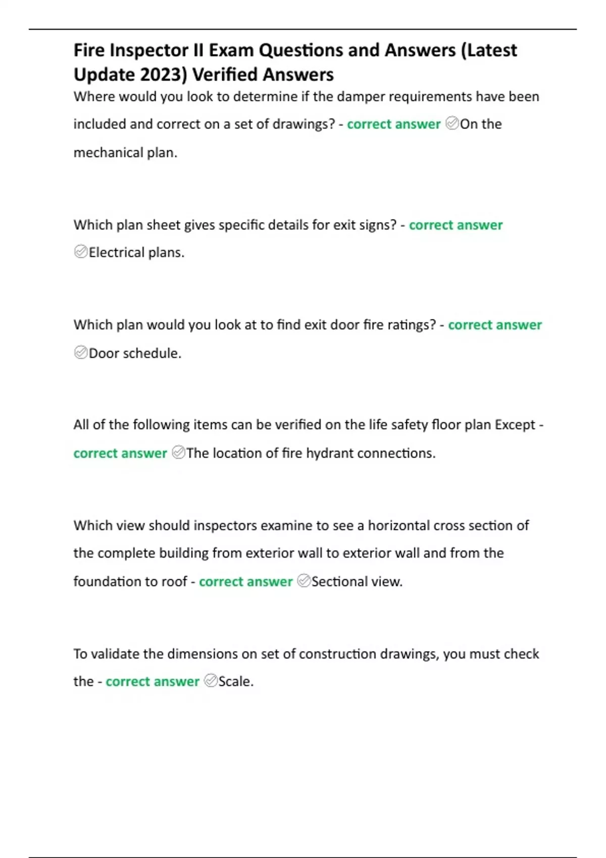 Fire Inspector II Exam Questions and Answers (Latest Update 2023) Verified Answers