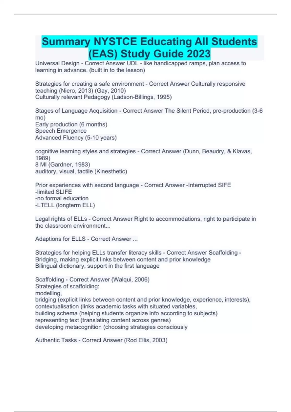 Summary NYSTCE Educating All Students (EAS) Study Guide 2023