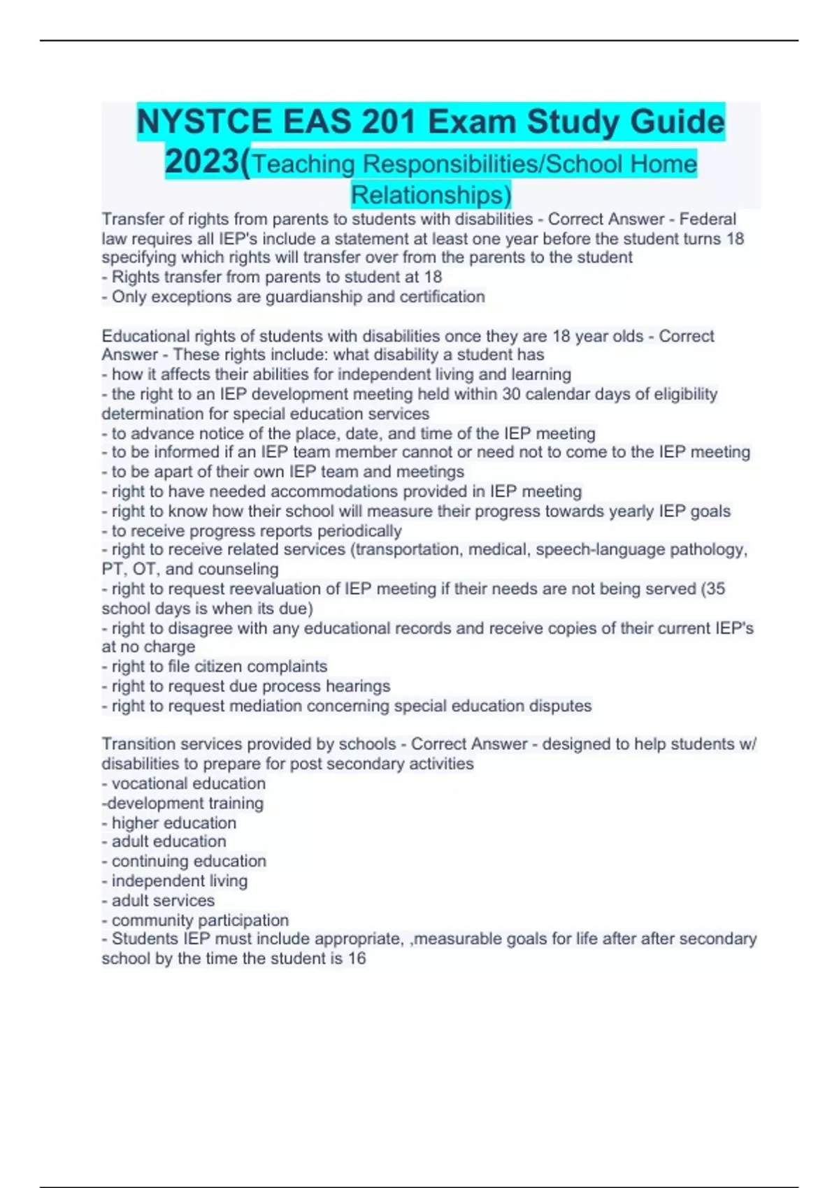 EAS practice test/NYSTCE Educating All Students (EAS) (201) Test Prep 2023/Summary Educating All Students - EAS Exam Review Guide_2023./Summary NYSTCE Educating All Students (EAS) Study Guide 2023/NYSTCE: Educating All Students (EAS) Exam 2023/NYSTCE EAS