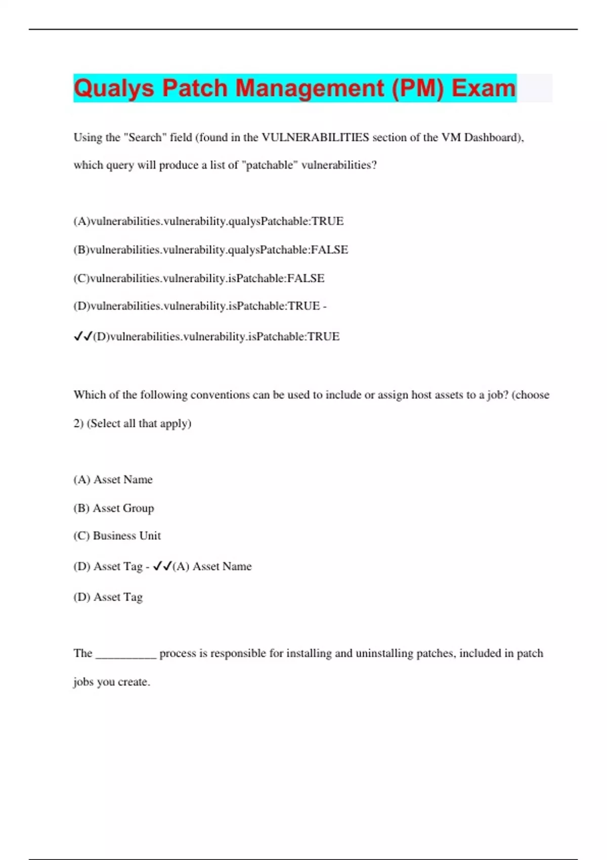 Qualys Patch Management (PM) Exam | Questions with 100% Correct Answers | Verified