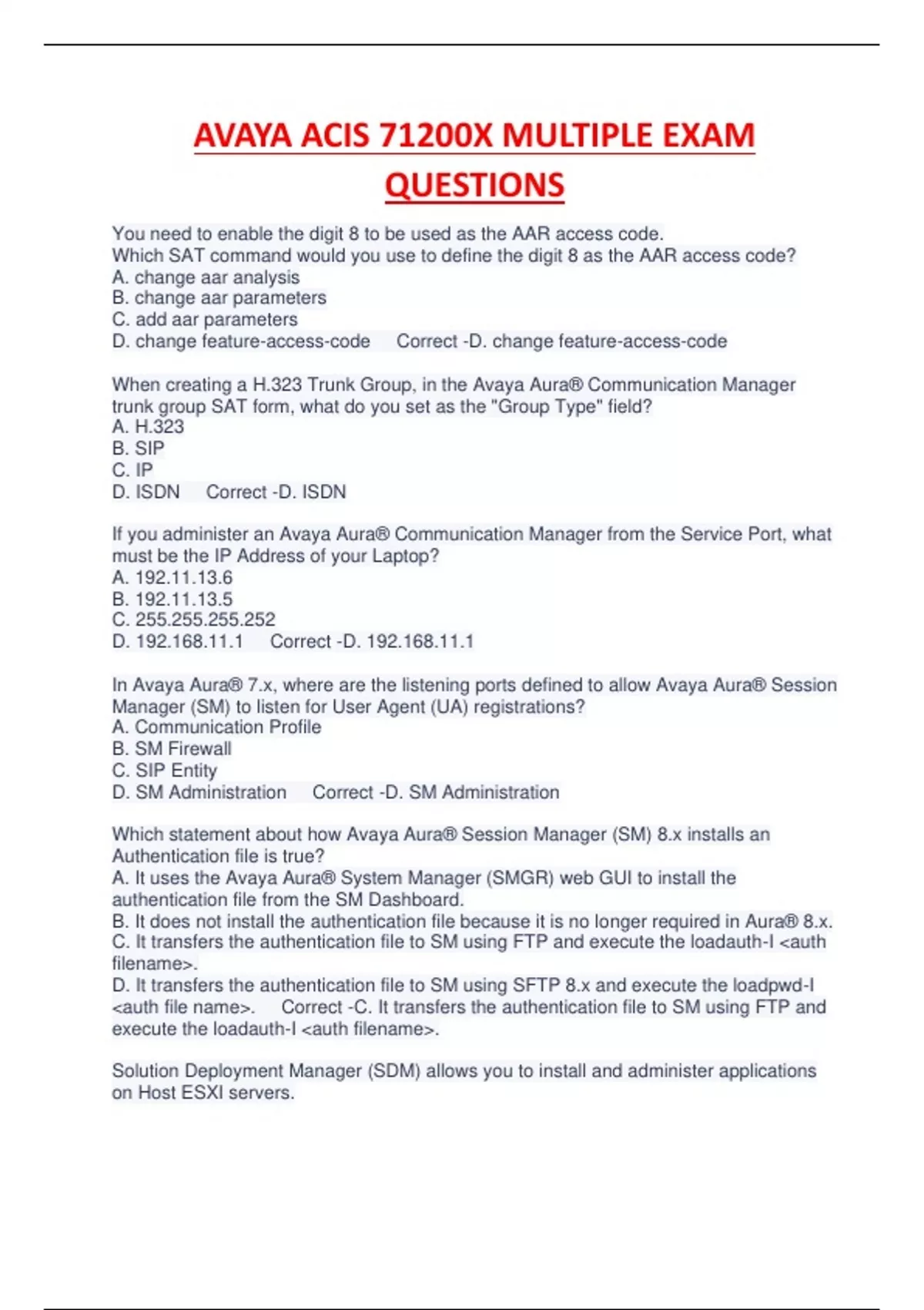 AVAYA ACIS 71200X MULTIPLE EXAM QUESTIONS RATED A.