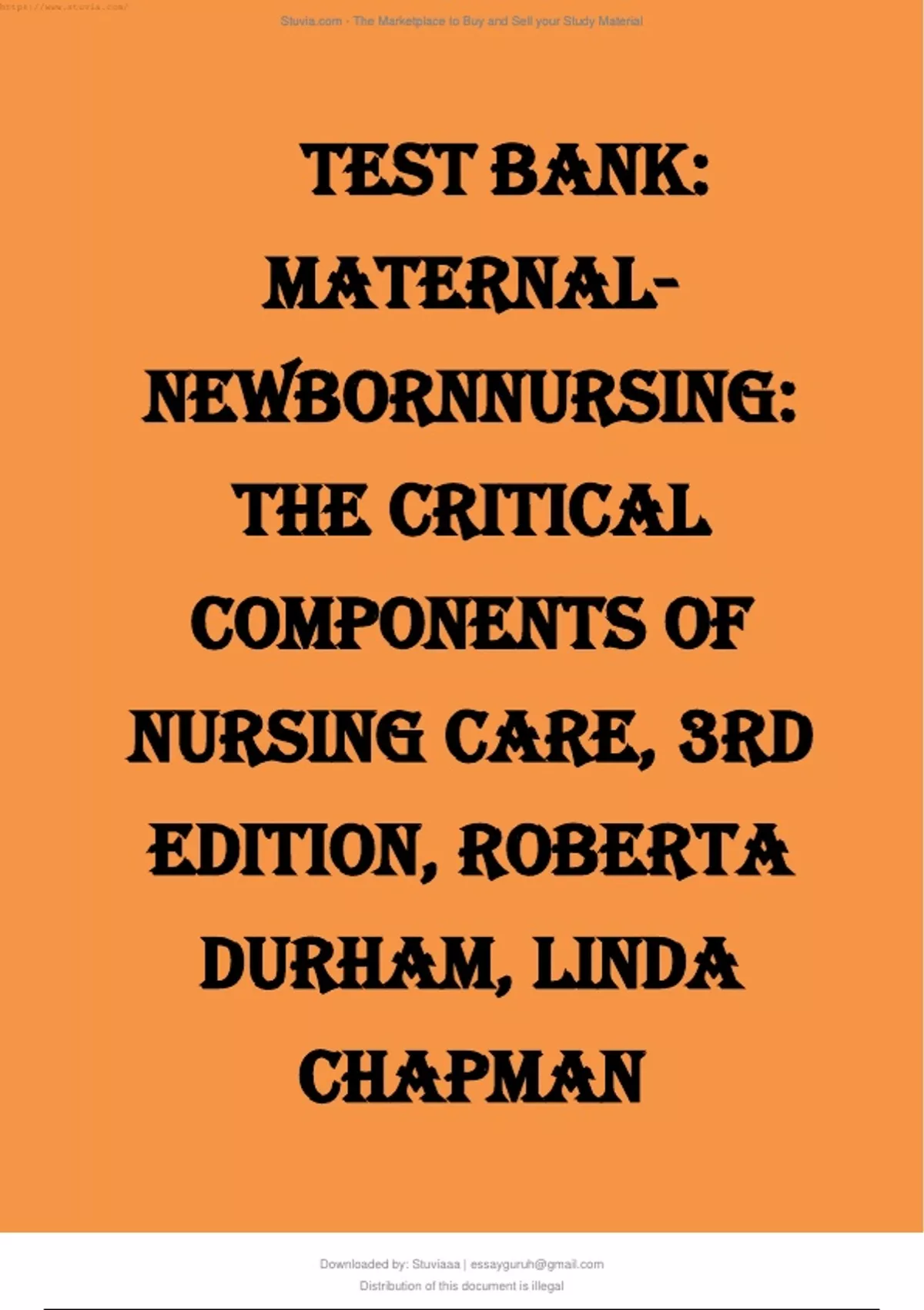 Test Bank Maternal-Newborn Nursing The Critical Components of Nursing Care, 3rd Edition, Roberta Durham, Linda Chapman Updated