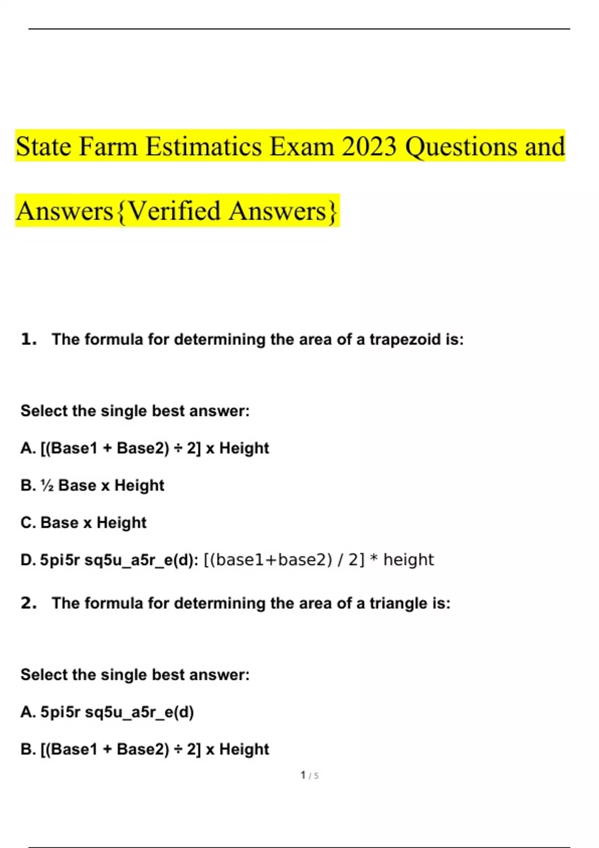 State Farm Estimatics Exam Questions and Answers (2022/2023) (Verified Answers)