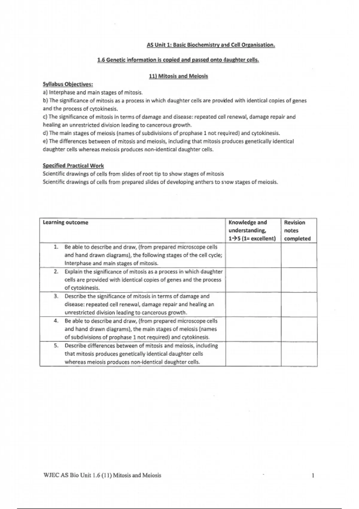 WJEC Biology AS/A Level Unit 1.6 Cell Division