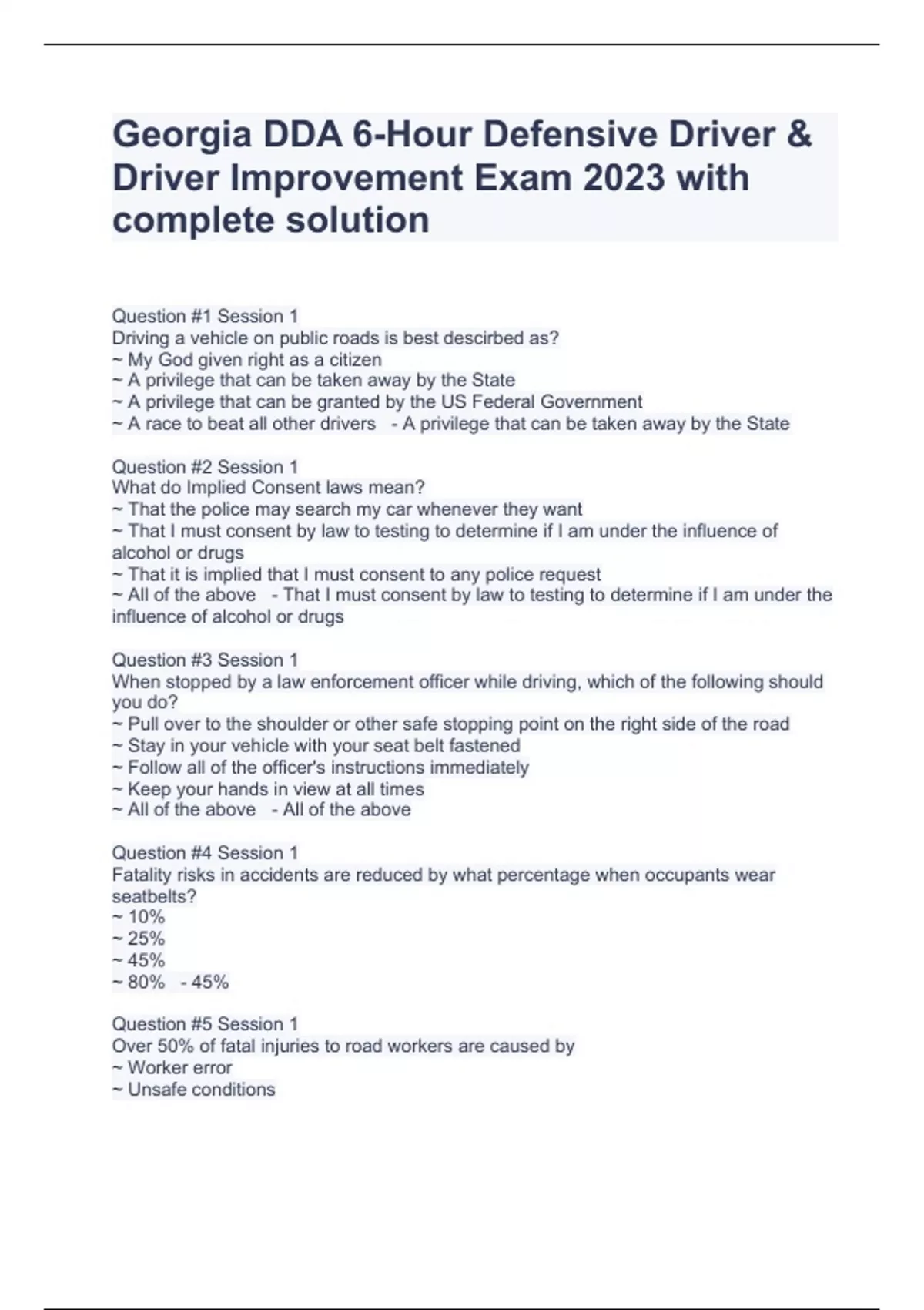 Georgia DDA 6-Hour Defensive Driver & Driver Improvement Exam 2023 with complete solution
