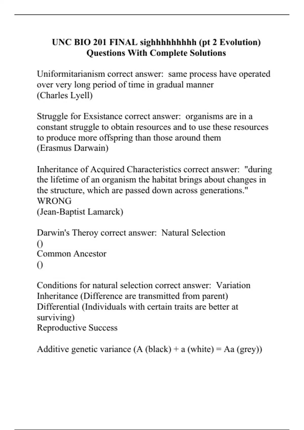 UNC BIO 201 FINAL sighhhhhhhhh (pt 2 Evolution) Questions With Complete Solutions