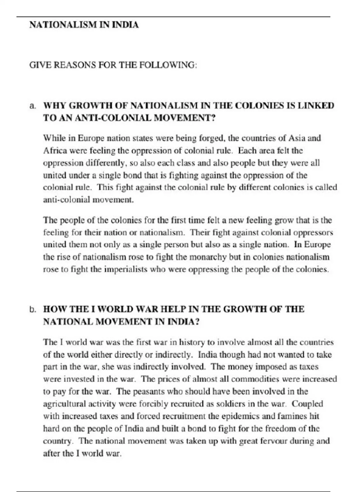 Provide well written notes of history for class 10th students