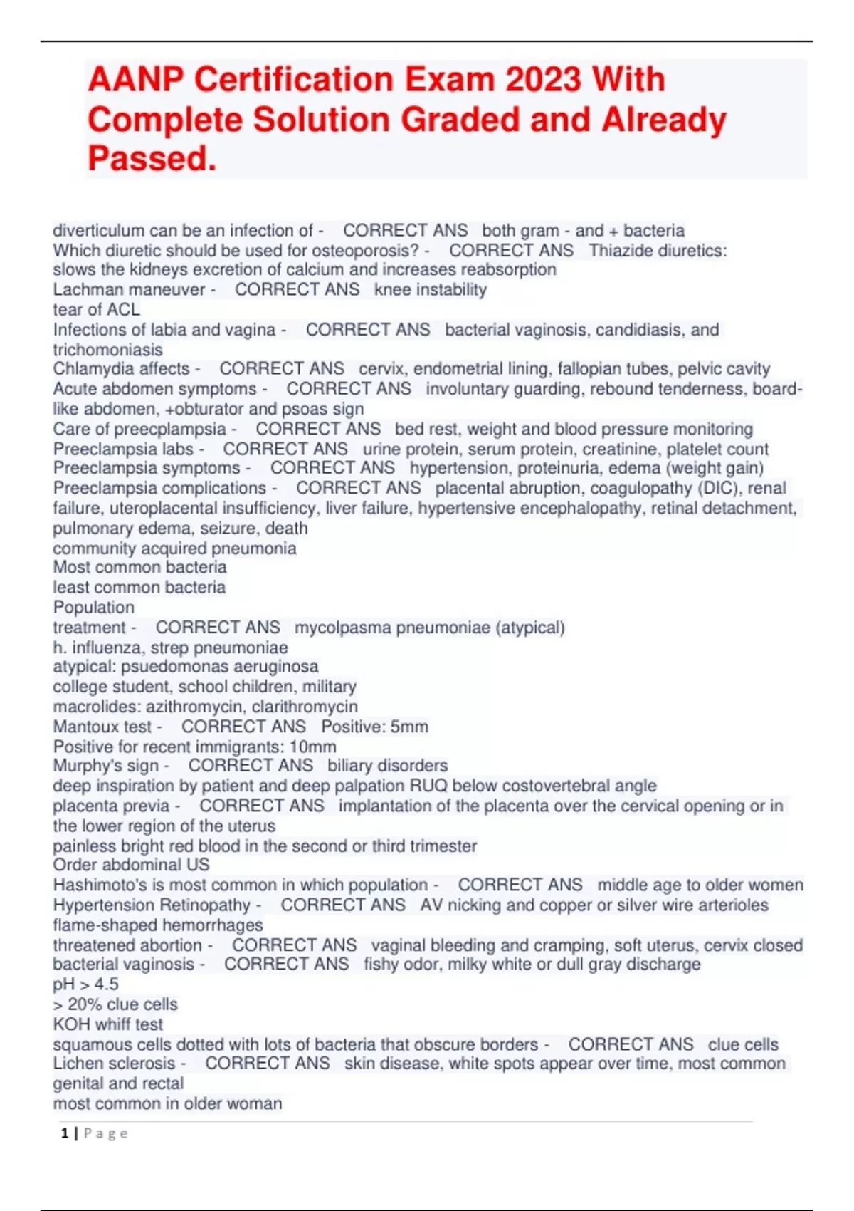 AANP Certification Exam 2023 With Complete Solution Graded and Already Passed.