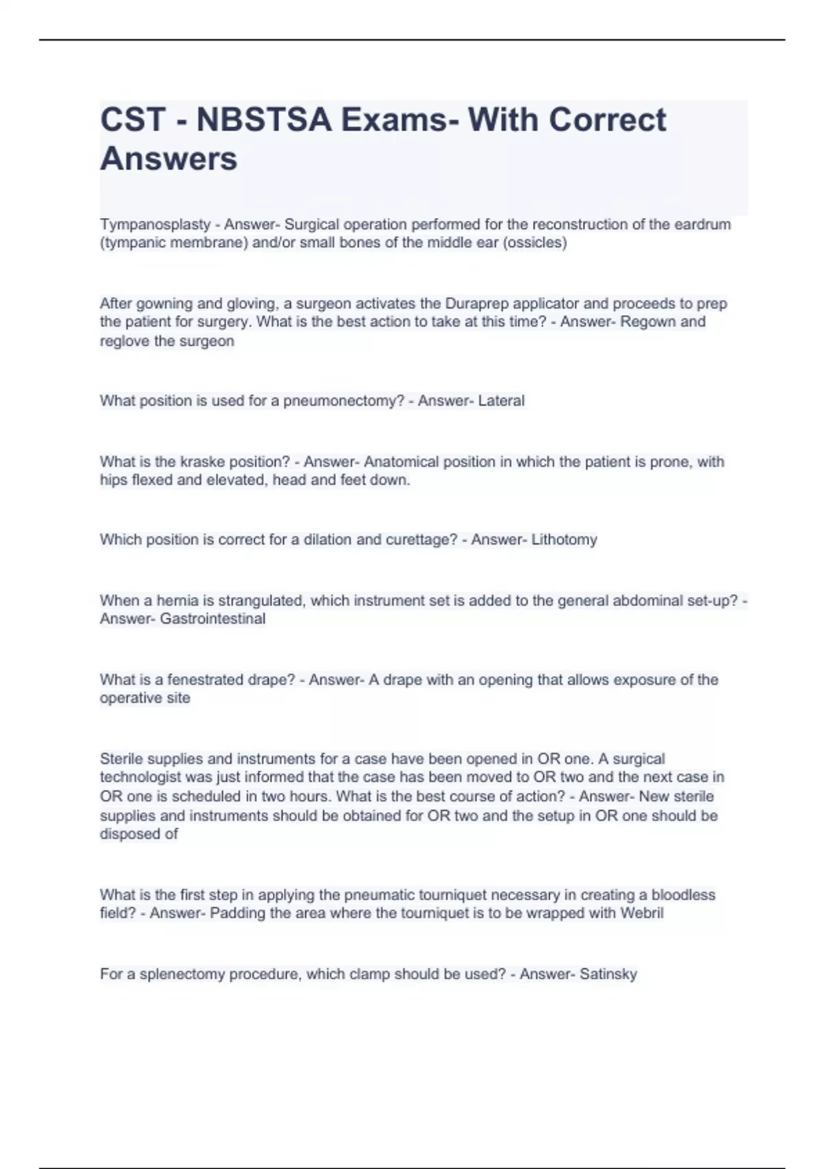 CST - NBSTSA Exams- With Correct Answers