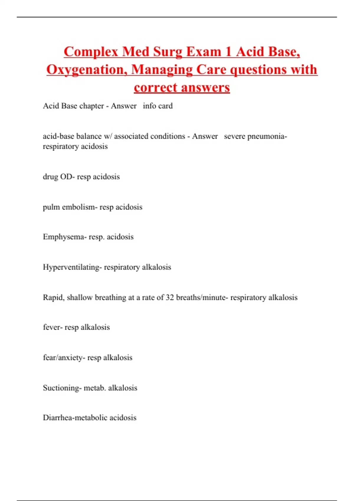 complex med surg exam 1 acid base