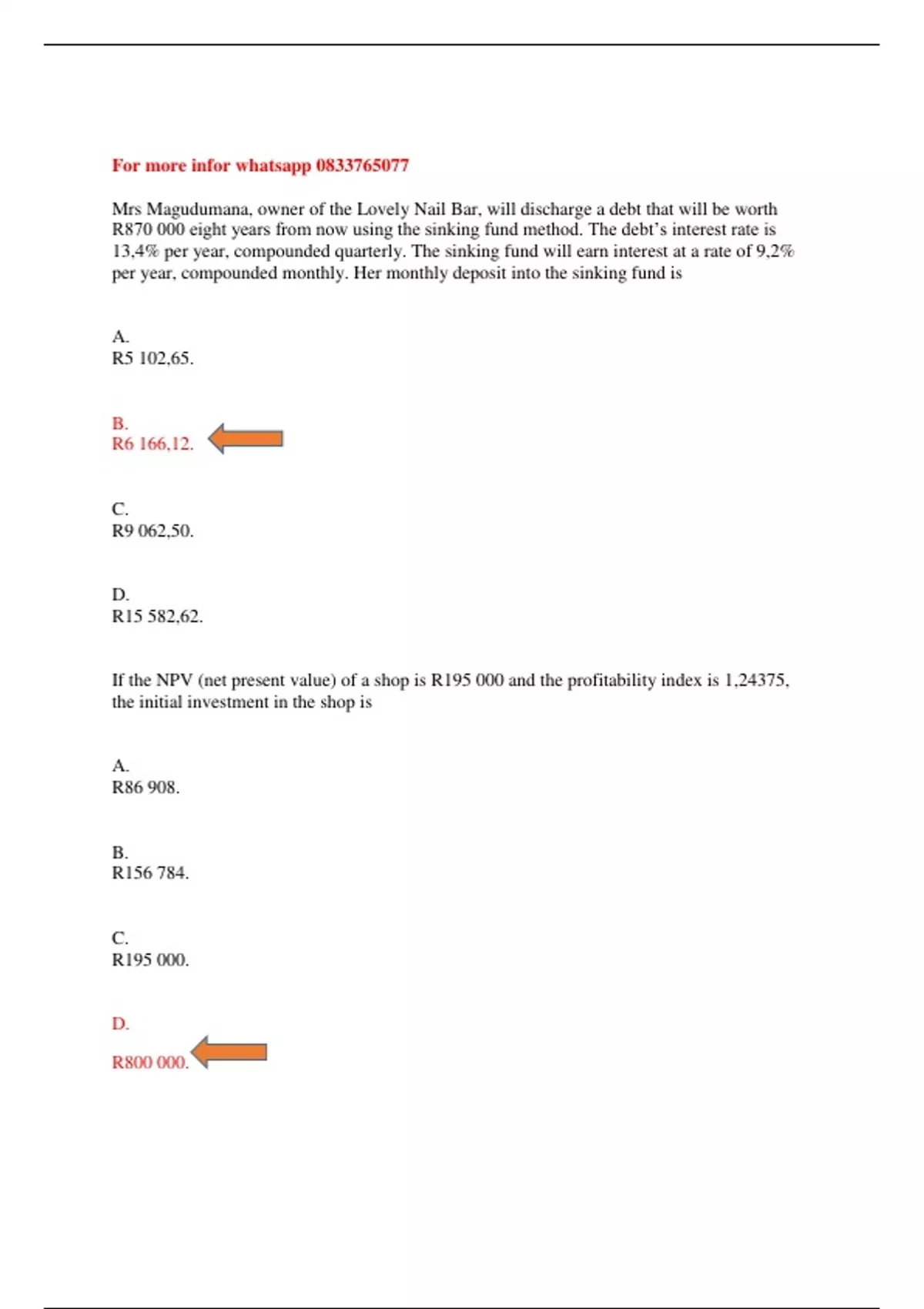R870 000 eight years from now using the sinking fund method. The debt’s interest rate is