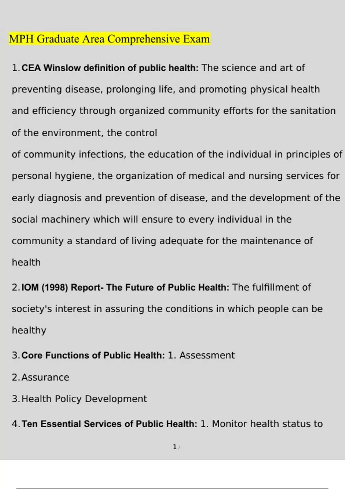 mph graduate area comprehensive exam 20222023