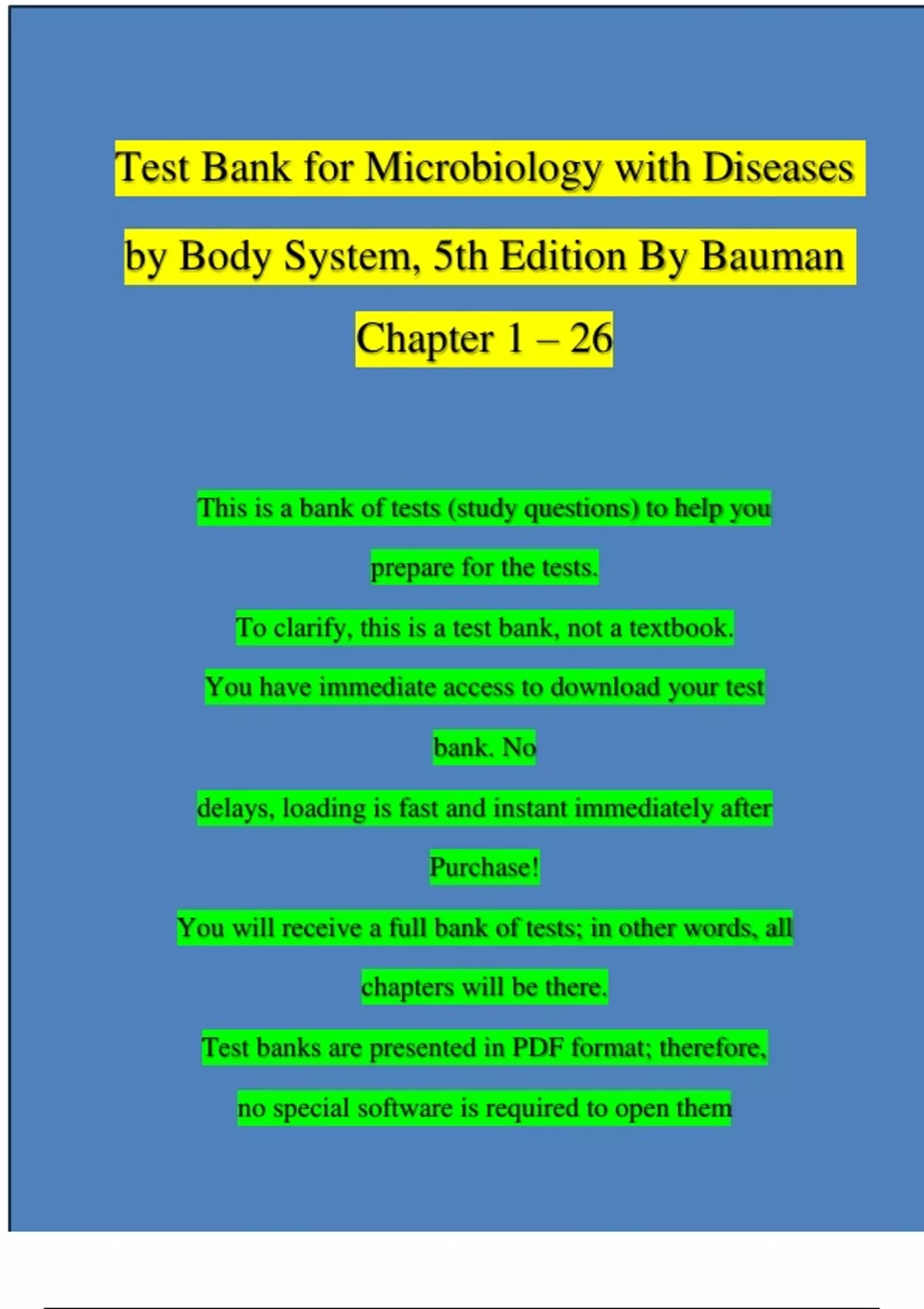 Test Bank for Microbiology with Diseases by Body System 5th Edition, Bauman | Complete Chapter 1 - 26 | 100 % Verified