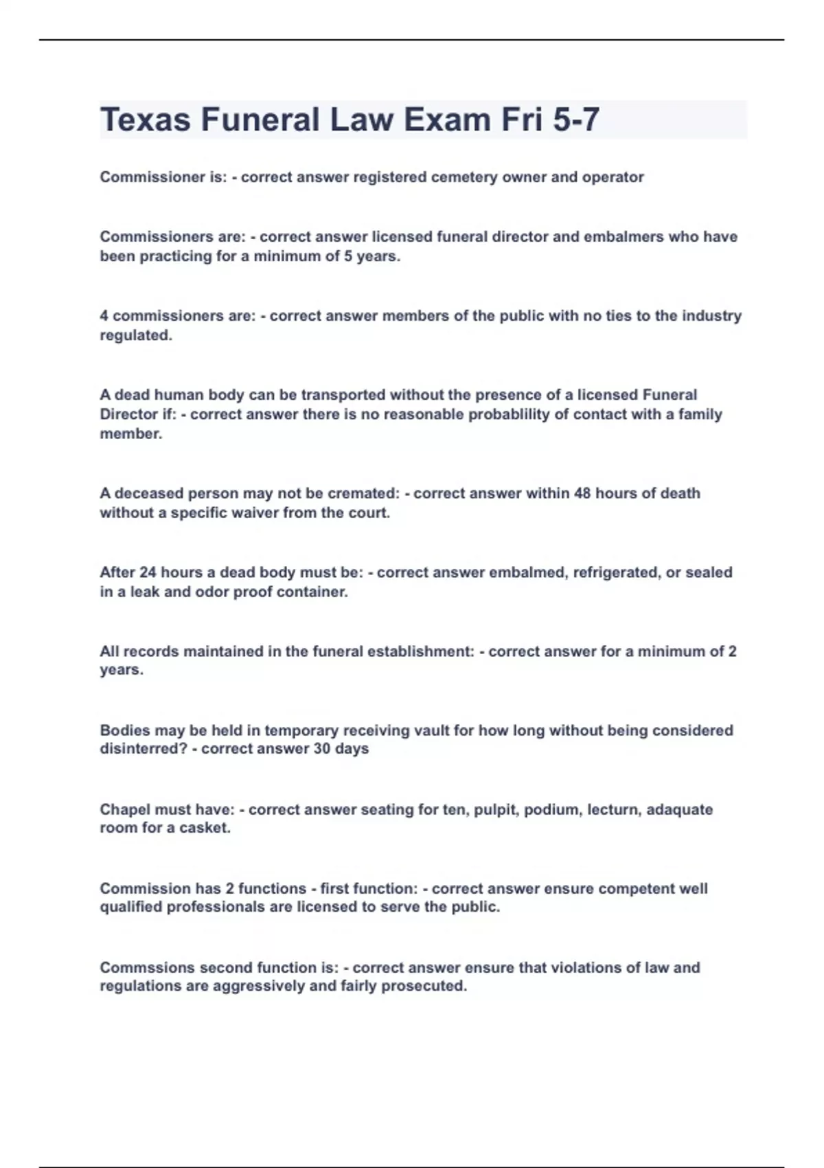 Texas Funeral Law Exam Fri 5-7|2023LATEST UPDATE|GUARANTEED SUCCESS