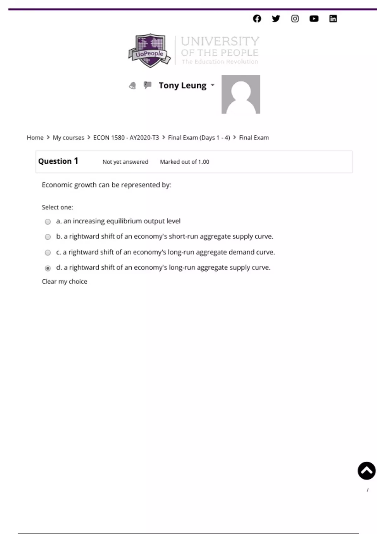 Home My courses ECON 1580 - AY2020-T3 Final Exam (Days 1 - 4) Final Exam