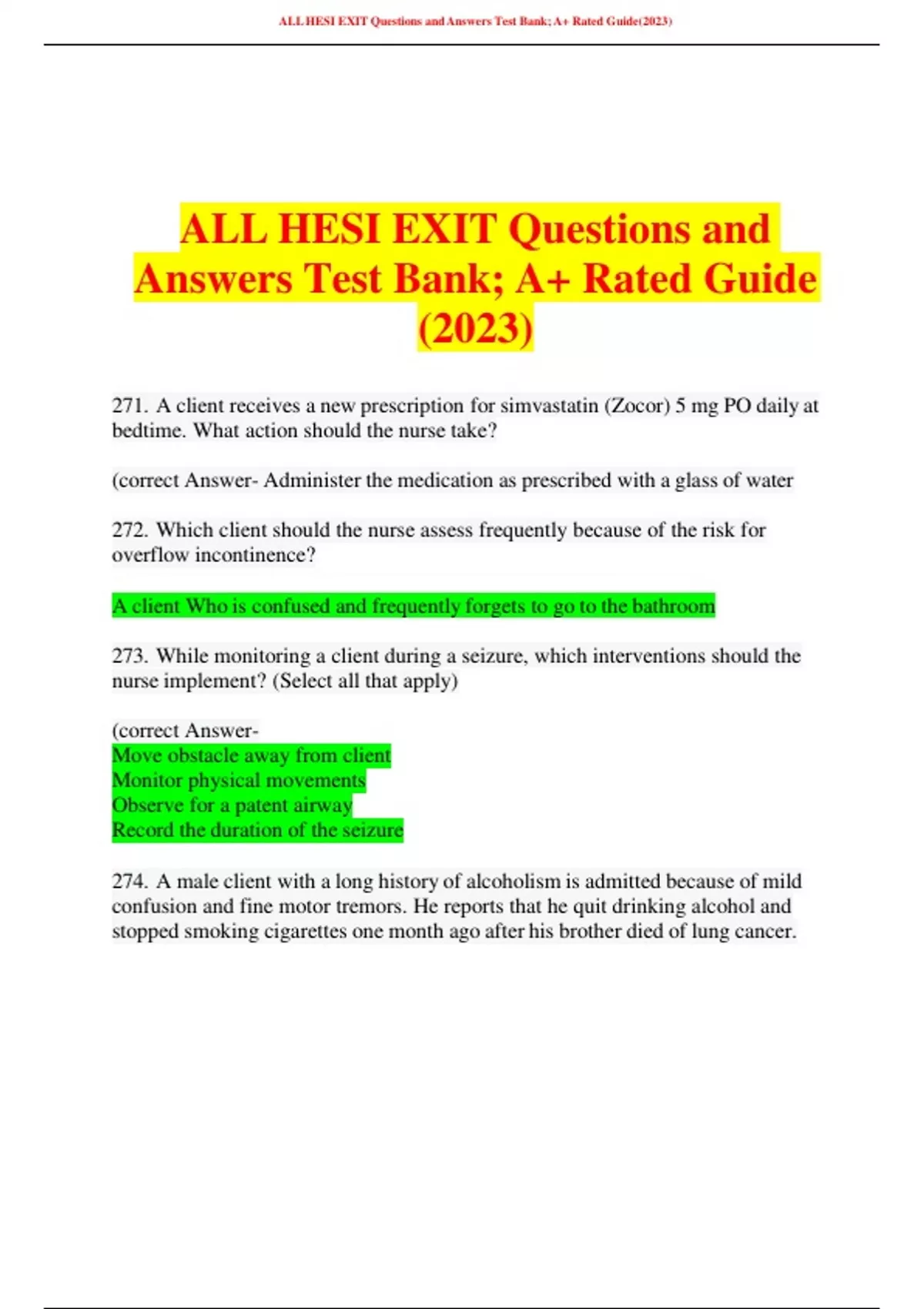 ALL HESI EXIT Questions and Answers Test Bank 2023