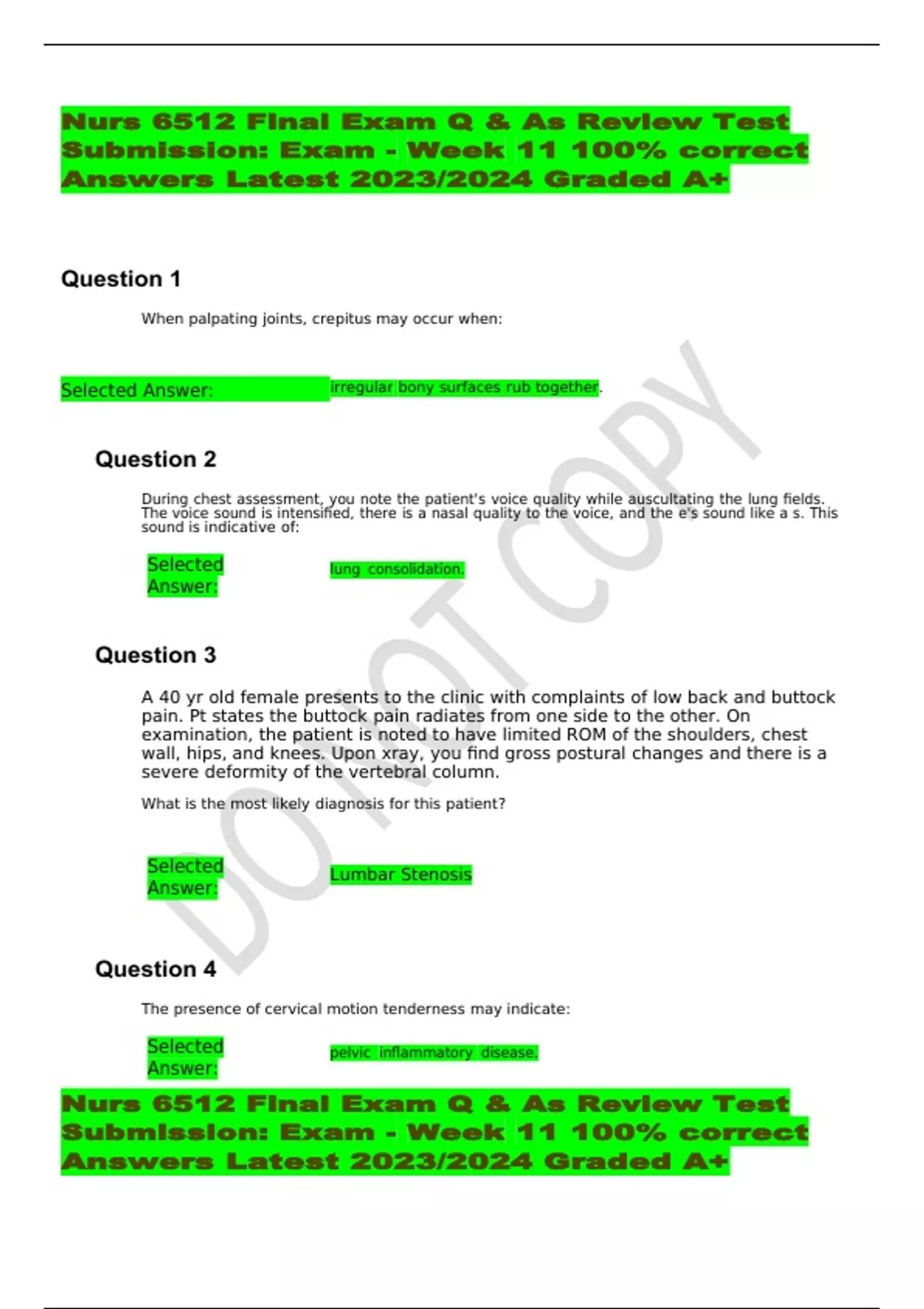 Nurs 6512 Final Exam Q & As Review Test Submission: Exam - Week 11 100% correct Answers Latest 2023/2024 Graded A+