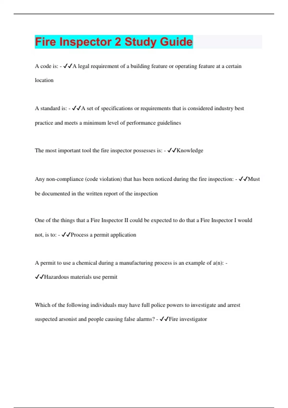 fire inspector 2 study guide